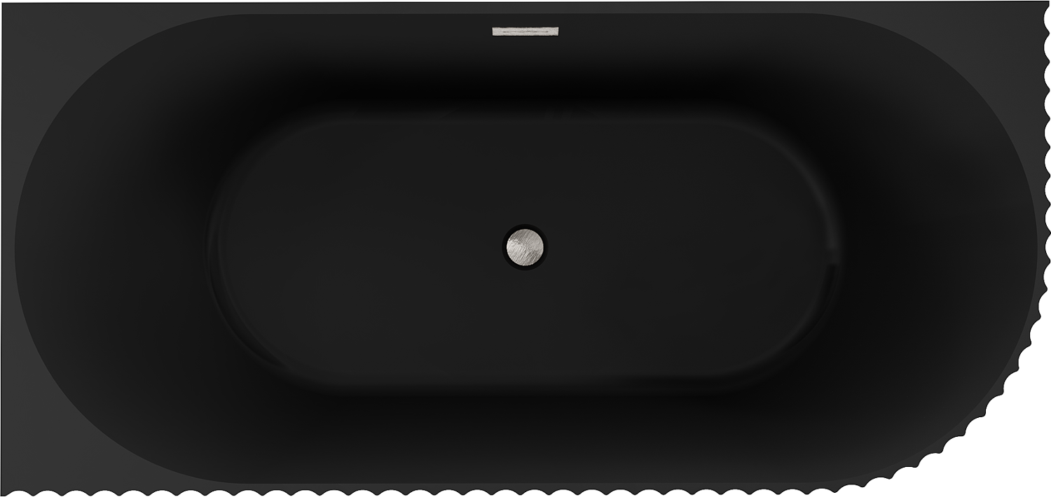 Mexen Gia szabadon álló sarokkád bordázott bal 170 x 80 cm, fekete matt, túlfolyó selyemfényű nikkel - 52701708071L-97