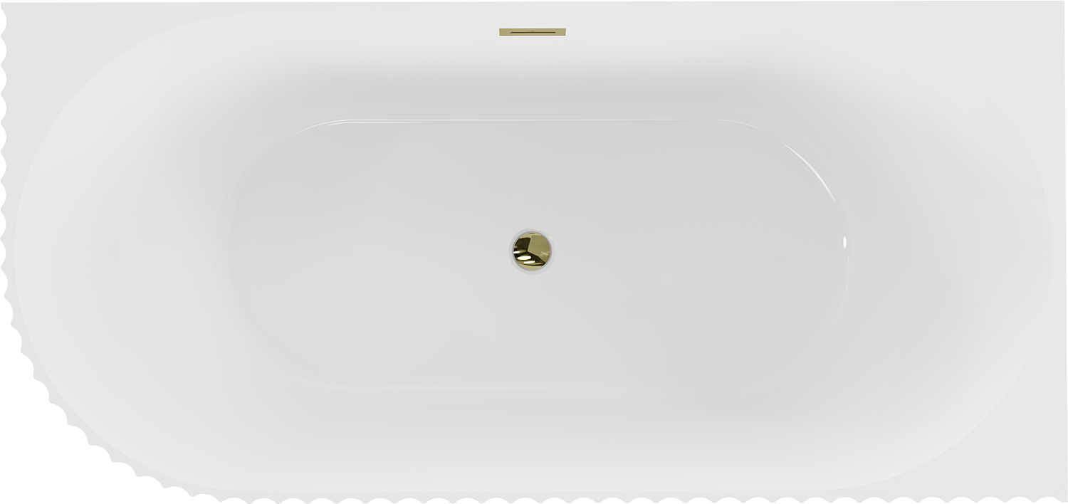 Mexen Gia szabadon álló sarokkád bordázott jobb 150 x 75 cm, fehér fényes, arany túlfolyó - 52701507500P-50