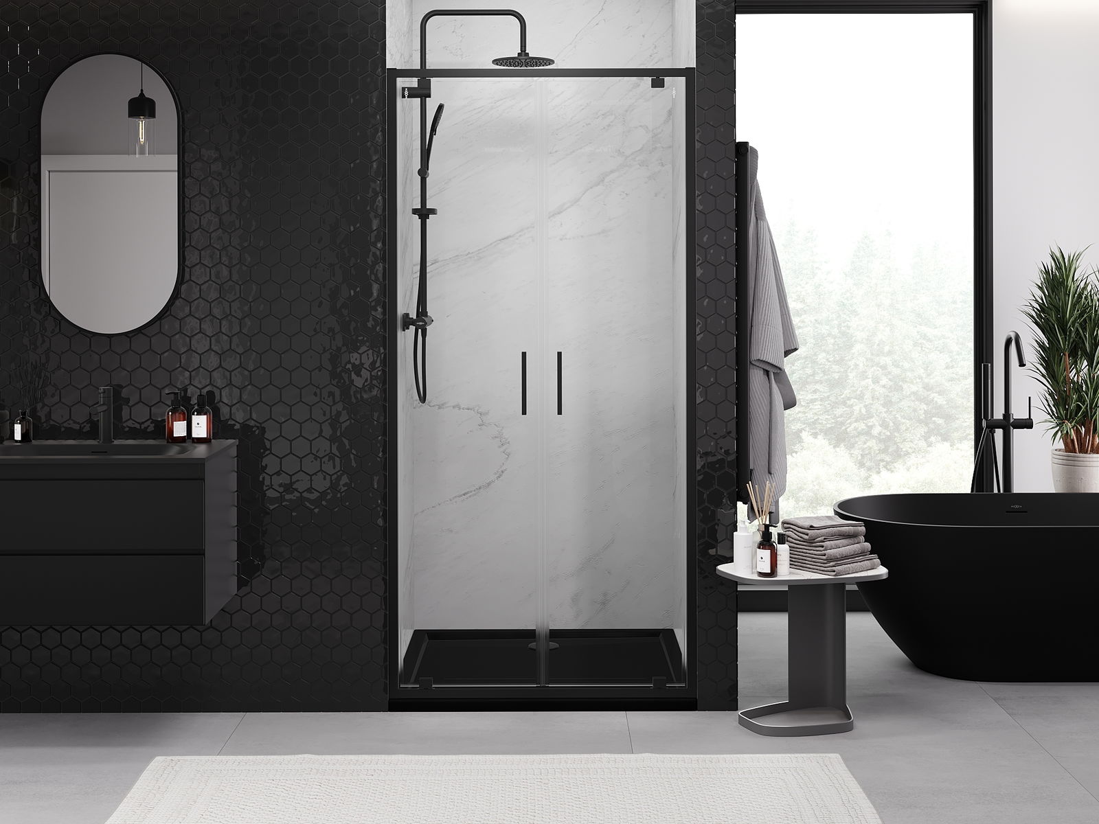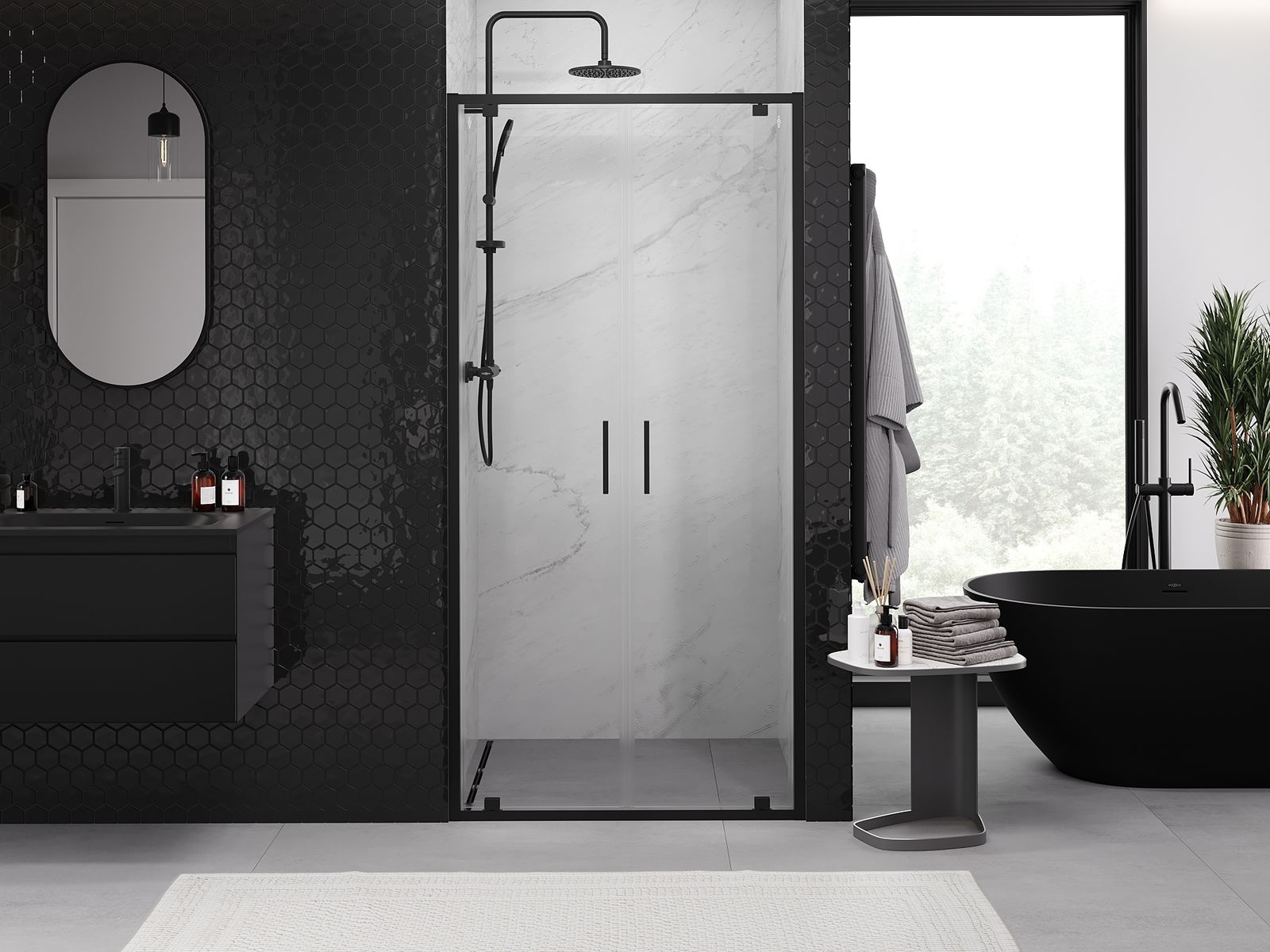 Mexen Exo kétszárnyú zuhanyajtó, 100 cm, átlátszó, fekete - 8182-100-000-70-00