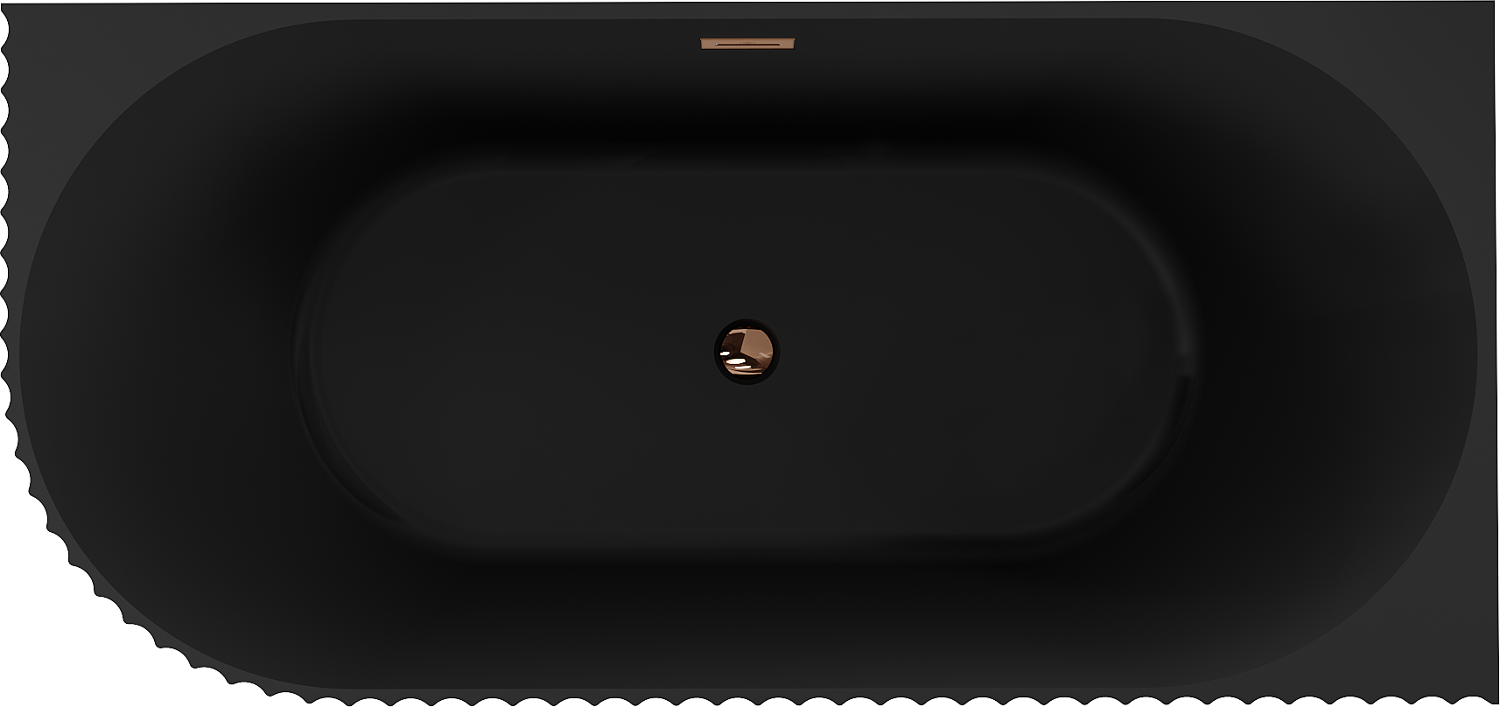 Mexen Gia szabadon álló sarokkád bordázott jobb 150 x 75 cm, fekete matt, túlfolyó rózsaszín arany - 52701507571P-60