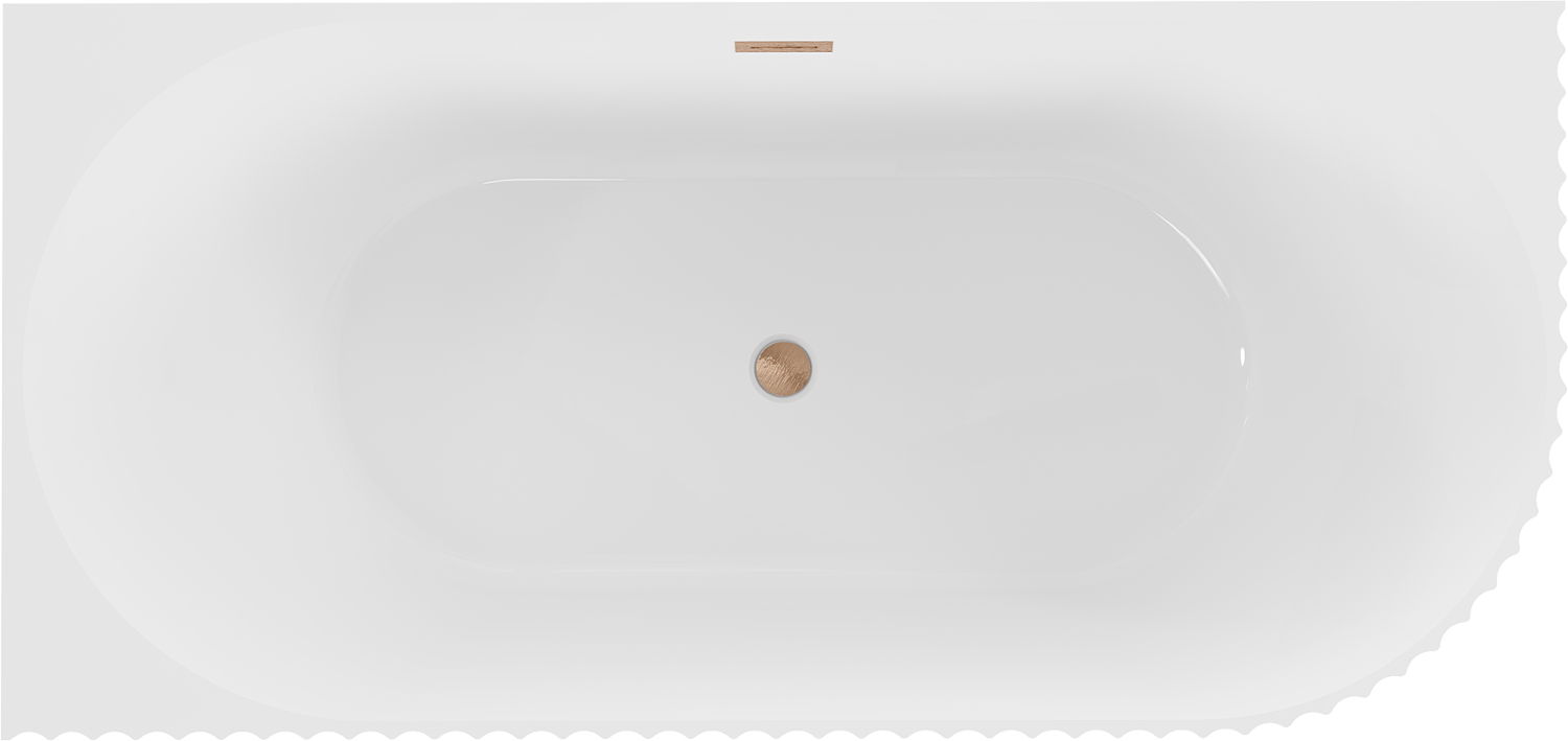 Mexen Gia szabadon álló sarokkád bordázott, jobb 170 x 80 cm, fehér fényes, réz túlfolyó kefélt - 52701708000P-65