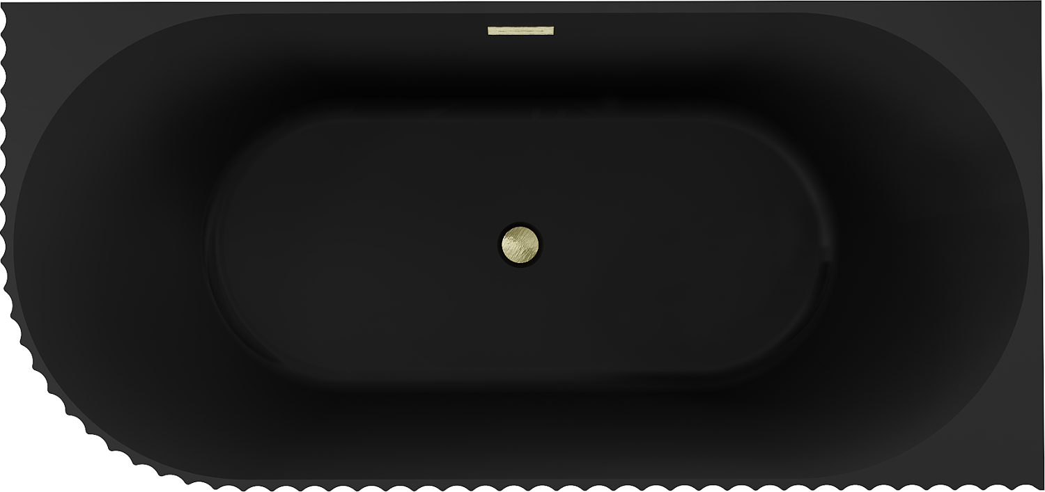 Mexen Gia szabadon álló sarokkád, bordázott jobb 170 x 80 cm, fekete matt, arany kefélt túlfolyóval - 52701708071P-55