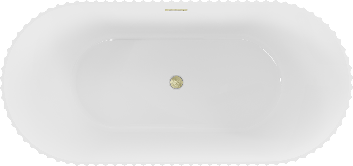 Mexen Paola szabadon álló, bordázott kád 150 x 75 cm, fényes fehér, aranyszínű szálcsiszolt túlfolyóval - 52721507500-55