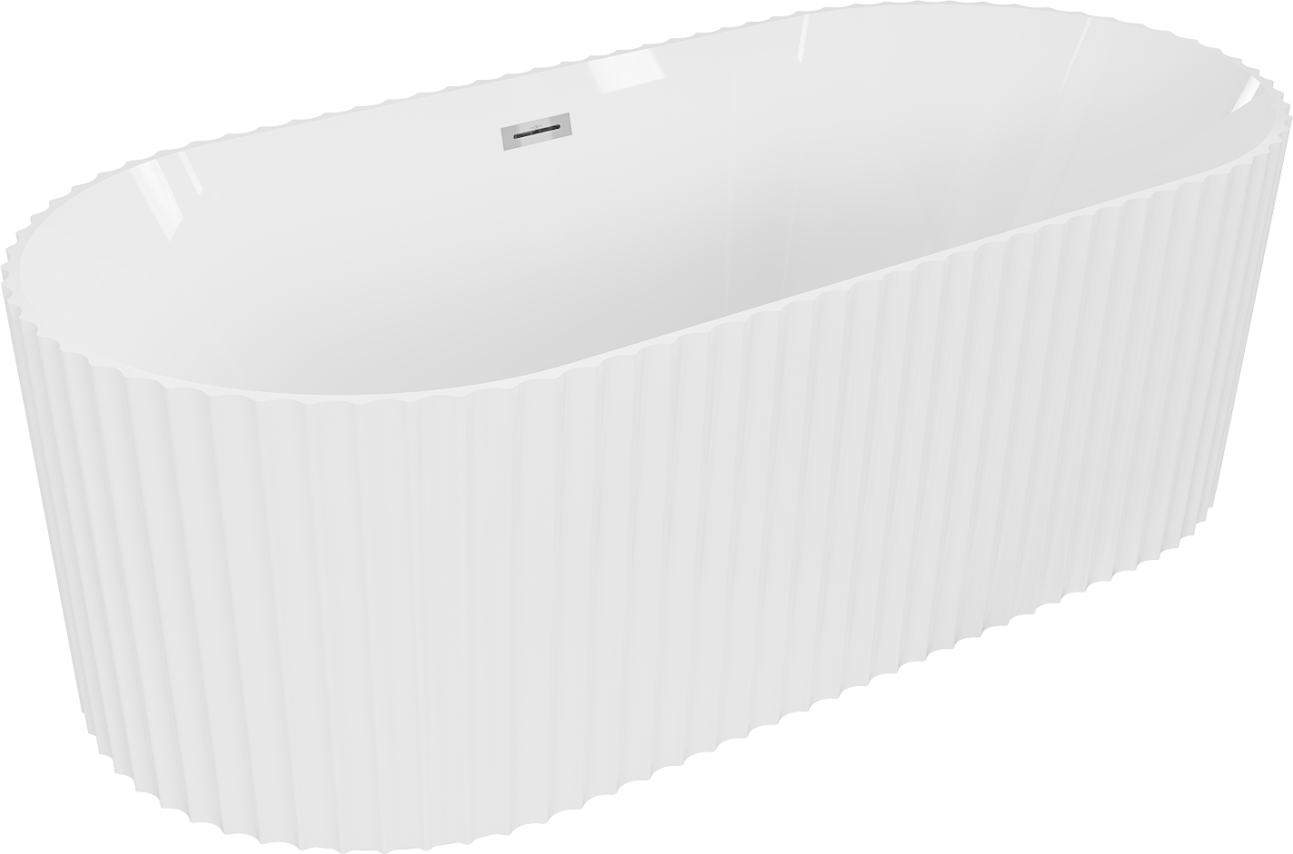 Mexen Paola szabadon álló, bordázott kád 170 x 80 cm, fényes fehér, króm túlfolyóval - 52721708000-01