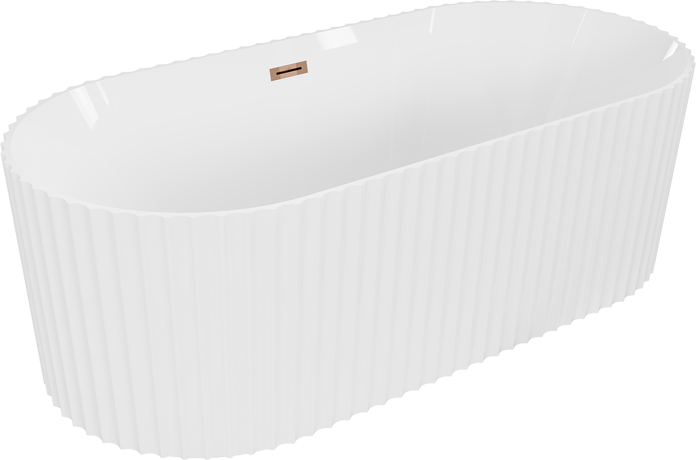 Mexen Paola szabadon álló, bordázott kád 170 x 80 cm, fényes fehér, rózsaarany túlfolyó - 52721708000-60