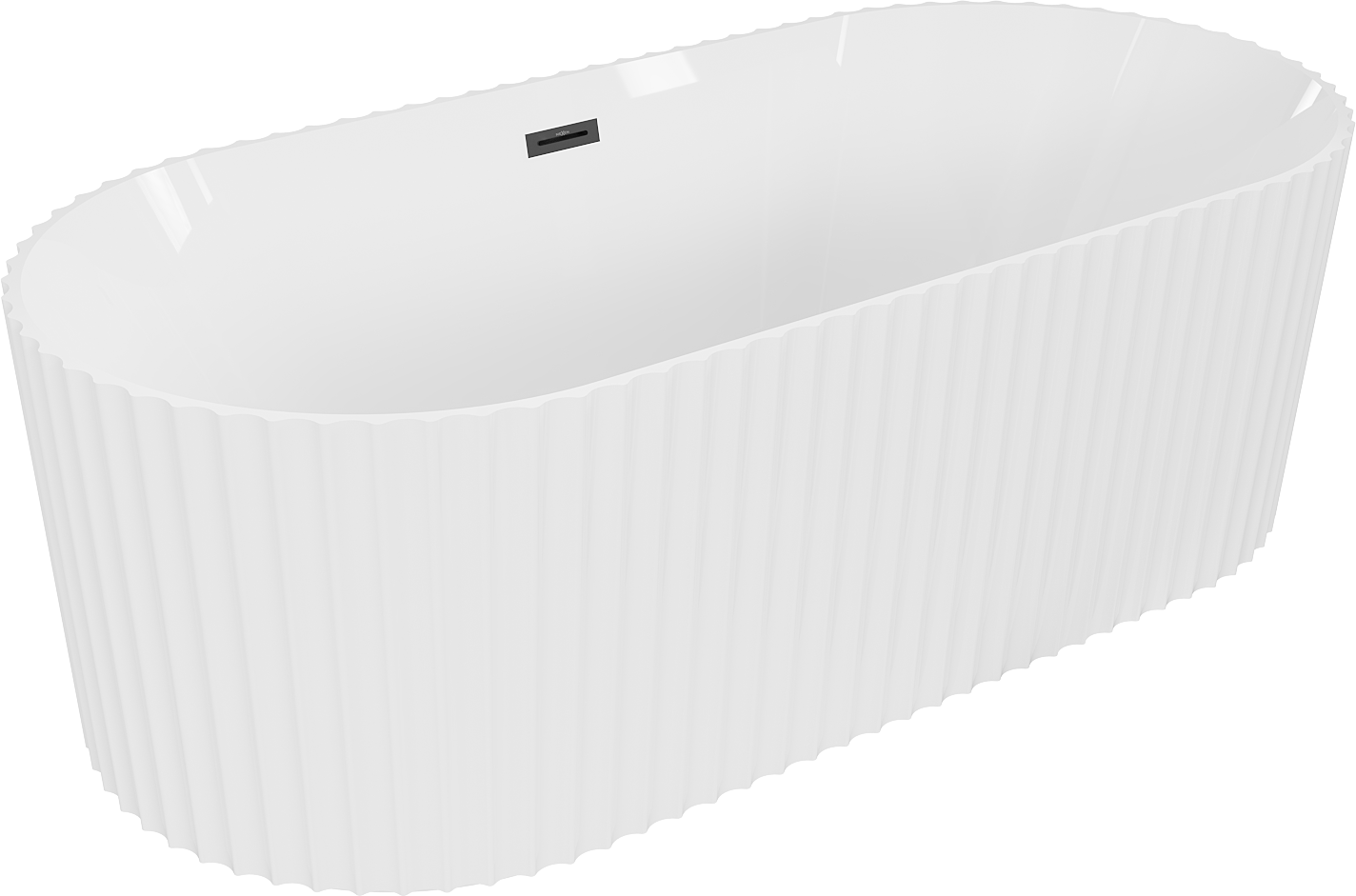 Mexen Paola szabadon álló barázdált kád 170 x 80 cm, fényes fehér, fekete túlfolyó - 52721708000-70