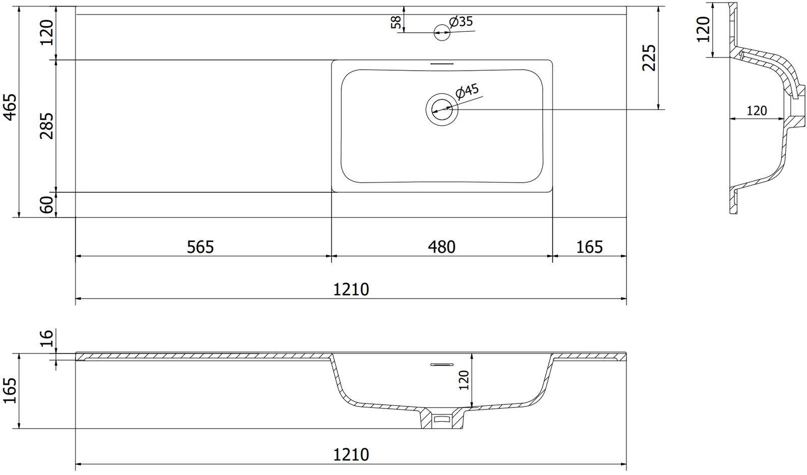 Mexen Otis beépíthető mosdó jobb 121 x 46,5 cm, fehér matt - 25181201P