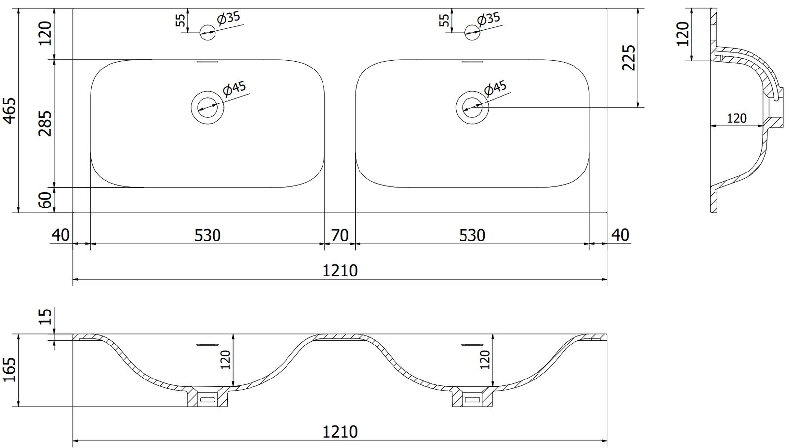 Mexen Vela dupla beépíthető mosdó 121 x 46,5 cm, fehér matt - 25231201D
