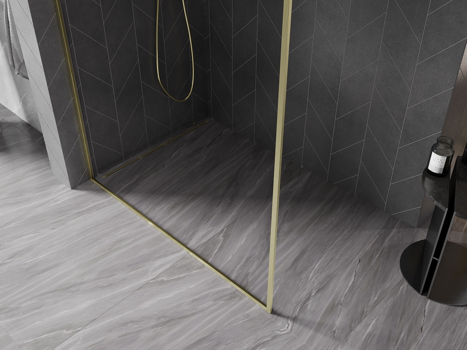Mexen Kioto-F zuhanyfal Walk-in kerettel 130 x 202 cm, átlátszó 8 mm, arany szálcsiszolt - 800-130-104-55-00