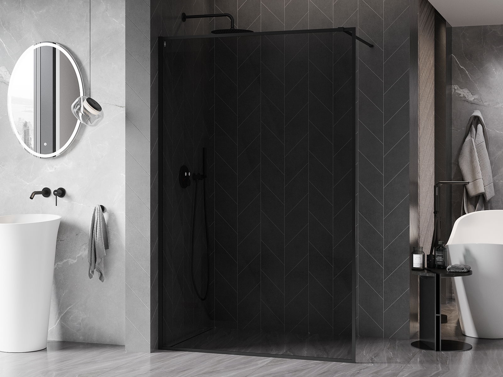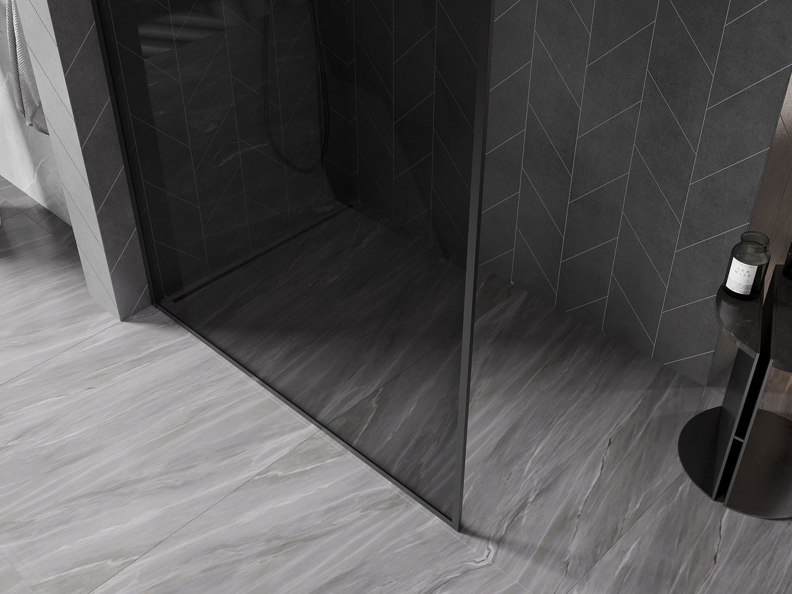 Mexen Kioto-F Walk-in zuhanyfal kerettel 140 x 202 cm, grafit 8 mm, fekete - 800-140-104-70-40