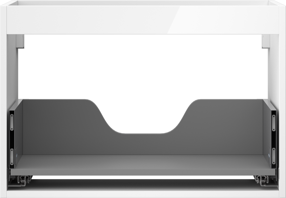 A fiókban lévő kivágás úgy van kialakítva, hogy befogadja a mosdó telepítéseknél szükséges szifont. Ennek köszönhetően a bútor teljesen funkcionálisan felszerelhető anélkül, hogy a fiók terének egy részét fel kellene áldozni a telepítés miatt.