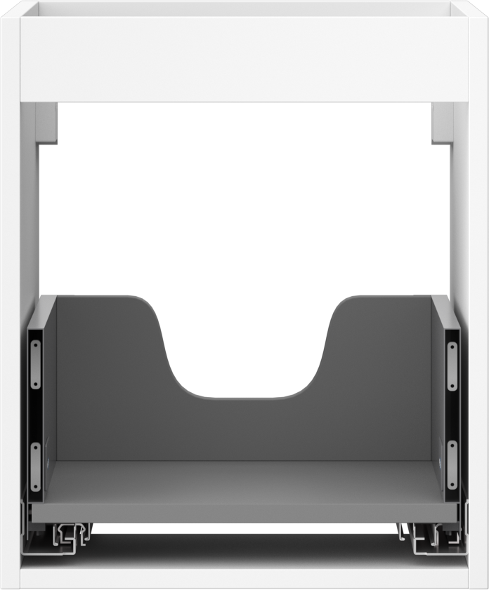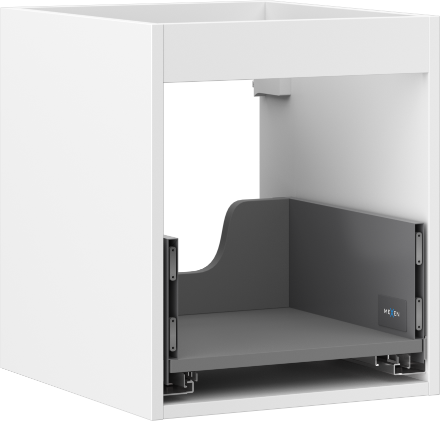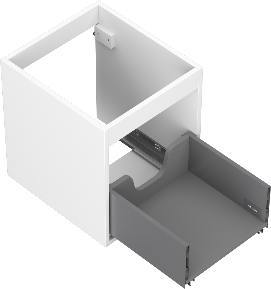 A fiókban lévő kivágás úgy van kialakítva, hogy befogadja a mosdó telepítéseknél szükséges szifont. Ennek köszönhetően a bútor teljesen funkcionálisan felszerelhető anélkül, hogy a fiók terének egy részét fel kellene áldozni a telepítés miatt.
