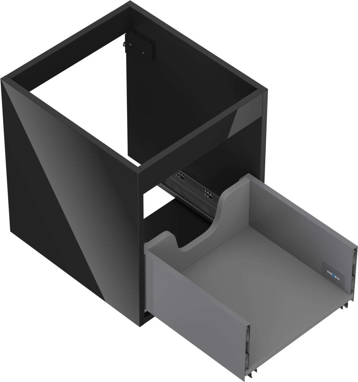 A fiókban lévő kivágás úgy van kialakítva, hogy befogadja a mosdó telepítéseknél szükséges szifont. Ennek köszönhetően a bútor teljesen funkcionálisan felszerelhető anélkül, hogy a fiók terének egy részét fel kellene áldozni a telepítés miatt.
