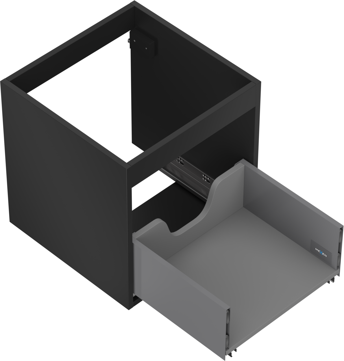 A fiókban lévő kivágás úgy van kialakítva, hogy befogadja a mosdó telepítéseknél szükséges szifont. Ennek köszönhetően a bútor teljesen funkcionálisan felszerelhető anélkül, hogy a fiók terének egy részét fel kellene áldozni a telepítés miatt.