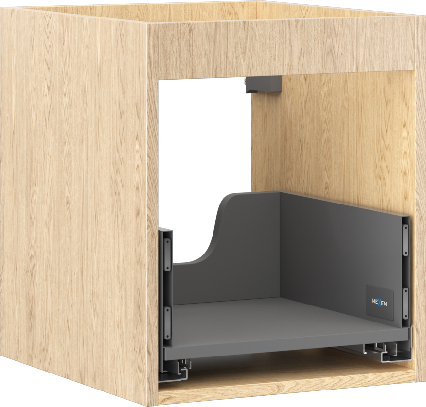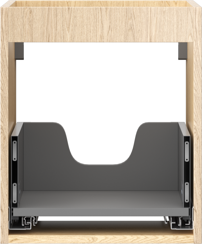 A fiókban lévő kivágás úgy van kialakítva, hogy befogadja a mosdó telepítéseknél szükséges szifont. Ennek köszönhetően a bútor teljesen funkcionálisan felszerelhető anélkül, hogy a fiók terének egy részét fel kellene áldozni a telepítés miatt.