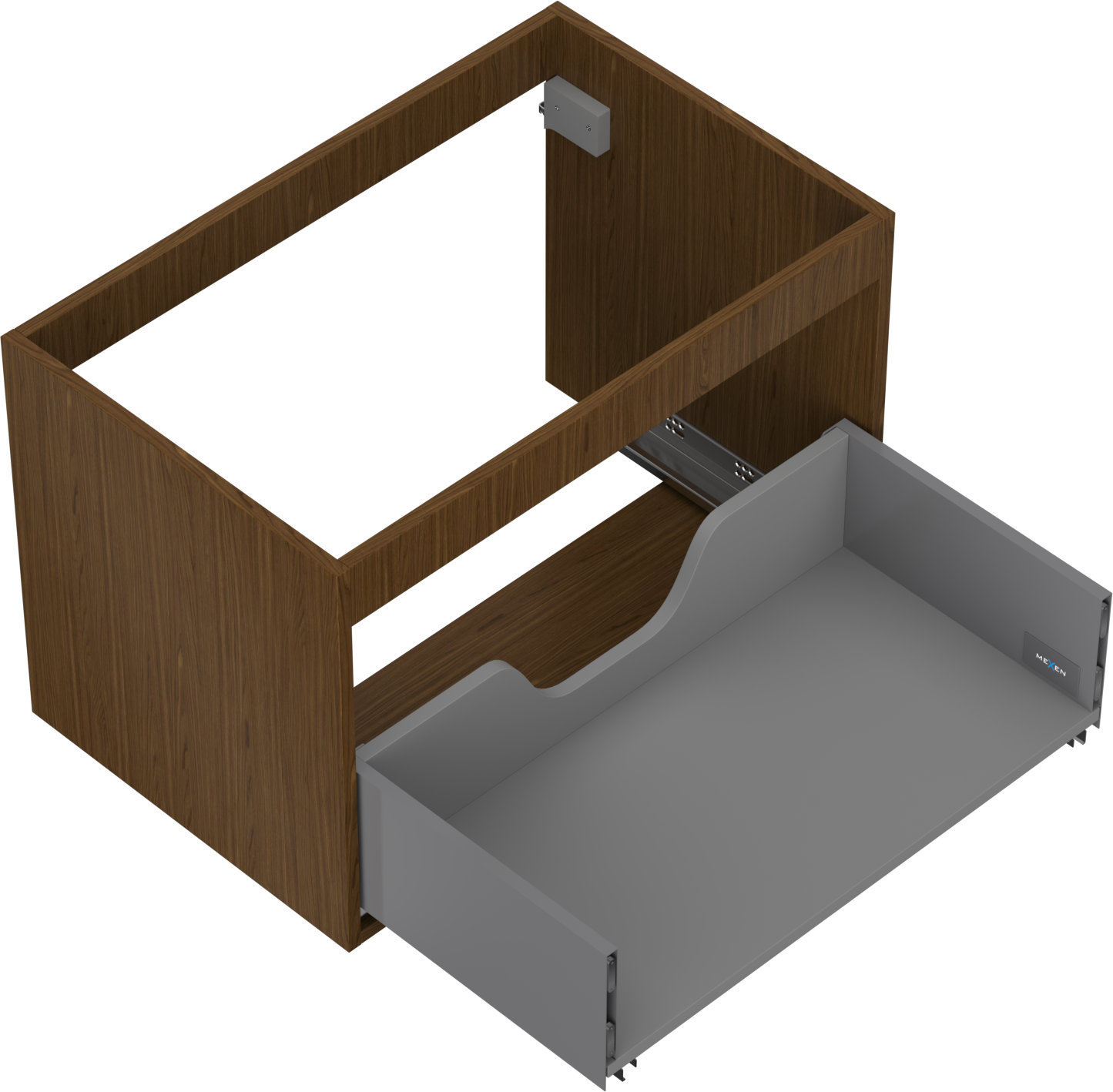 A fiókban lévő kivágás úgy van kialakítva, hogy befogadja a mosdó telepítéseknél szükséges szifont. Ennek köszönhetően a bútor teljesen funkcionálisan felszerelhető anélkül, hogy a fiók terének egy részét fel kellene áldozni a telepítés miatt.