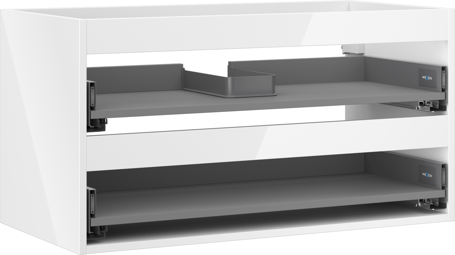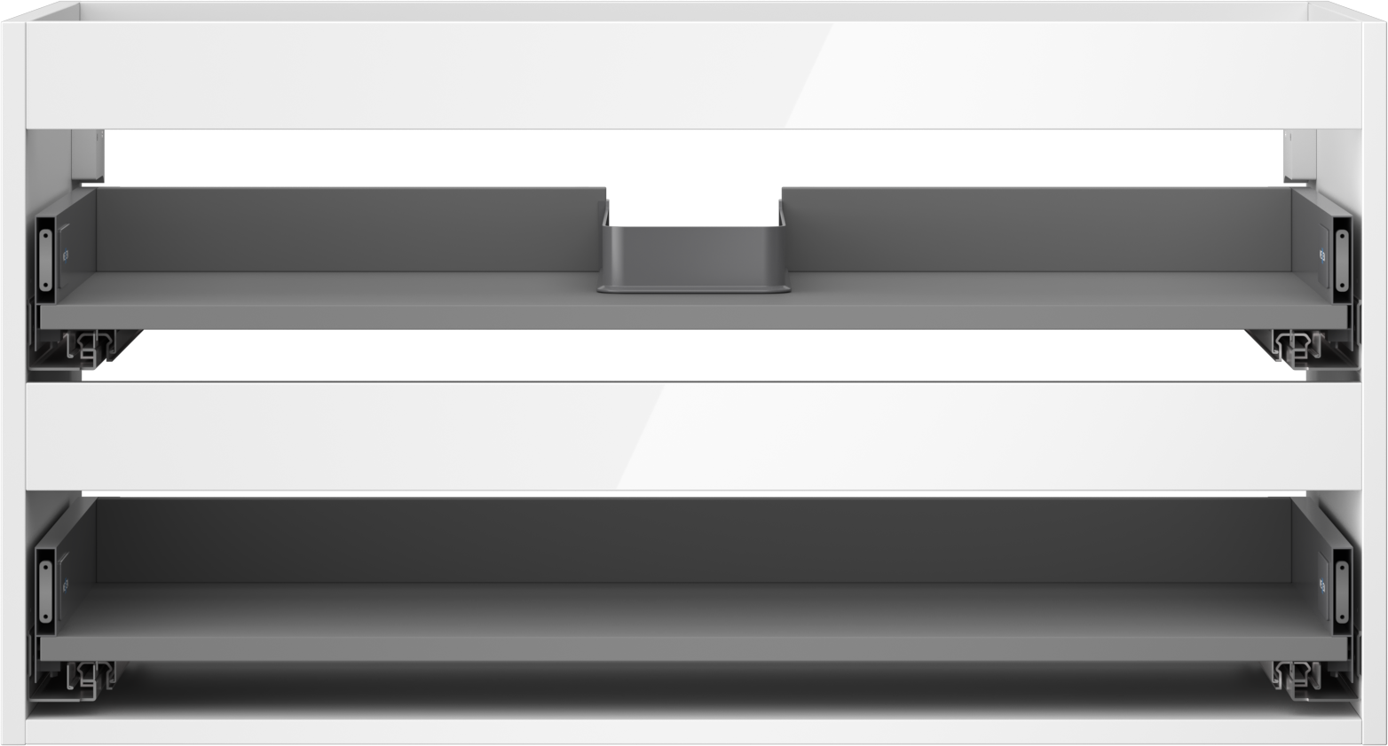 A fiókban lévő kivágás úgy van kialakítva, hogy befogadja a mosdó telepítéseknél szükséges szifont. Ennek köszönhetően a bútor teljesen funkcionálisan felszerelhető anélkül, hogy a fiók terének egy részét fel kellene áldozni a telepítés miatt.