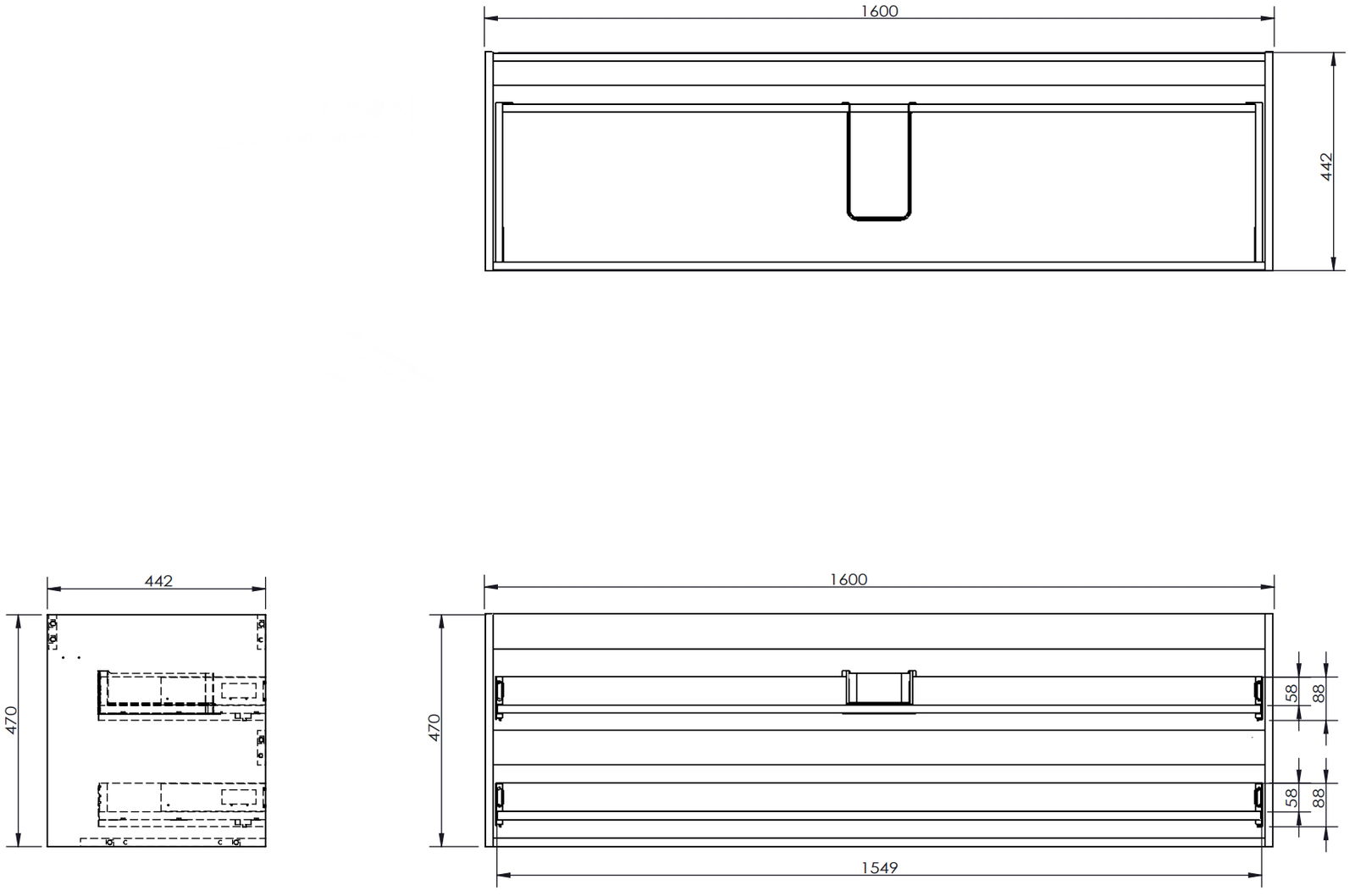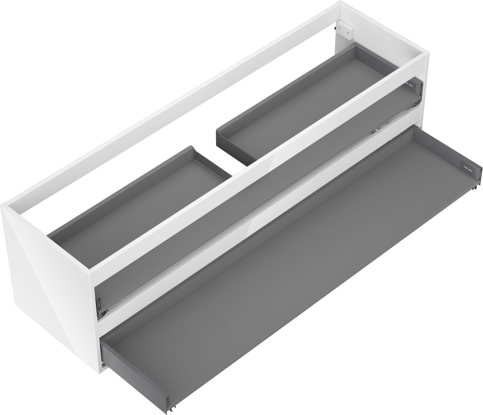 A fiókban lévő kivágás úgy van kialakítva, hogy befogadja a mosdó telepítéseknél szükséges szifont. Ennek köszönhetően a bútor teljesen funkcionálisan felszerelhető anélkül, hogy a fiók terének egy részét fel kellene áldozni a telepítés miatt.