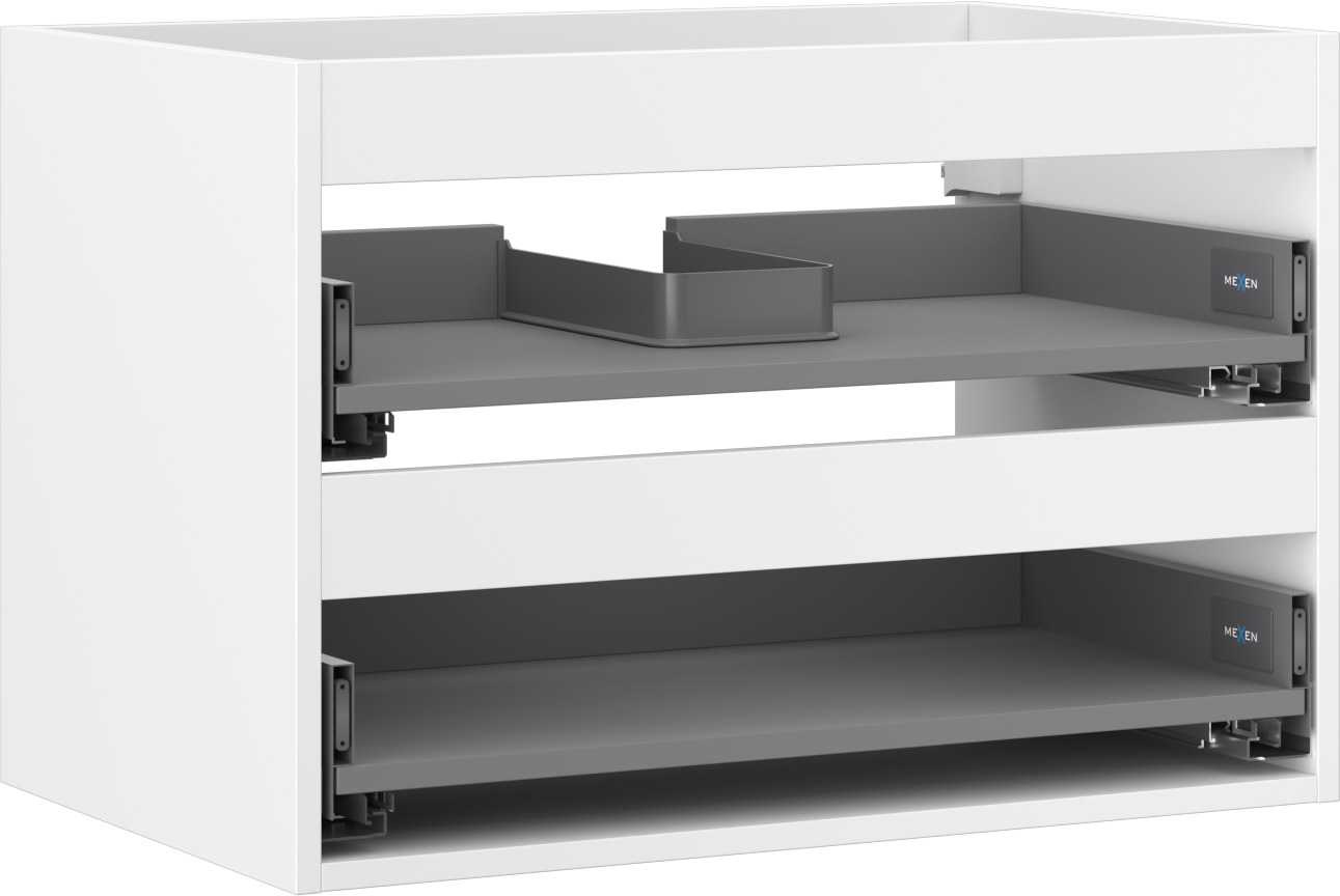 A fiókban lévő kivágás úgy van kialakítva, hogy befogadja a mosdó telepítéseknél szükséges szifont. Ennek köszönhetően a bútor teljesen funkcionálisan felszerelhető anélkül, hogy a fiók terének egy részét fel kellene áldozni a telepítés miatt.