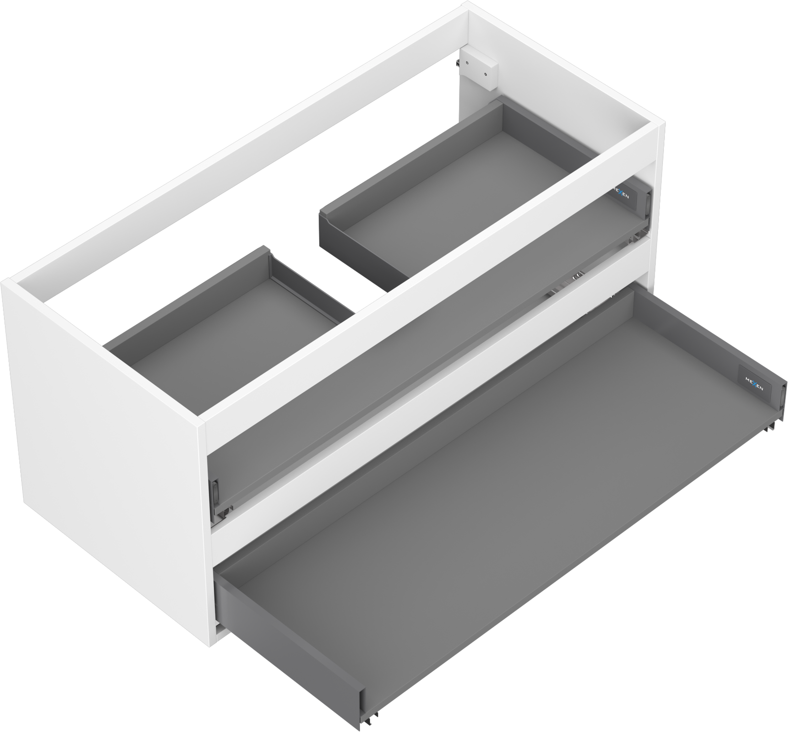 A fiókban lévő kivágás úgy van kialakítva, hogy befogadja a mosdó telepítéseknél szükséges szifont. Ennek köszönhetően a bútor teljesen funkcionálisan felszerelhető anélkül, hogy a fiók terének egy részét fel kellene áldozni a telepítés miatt.