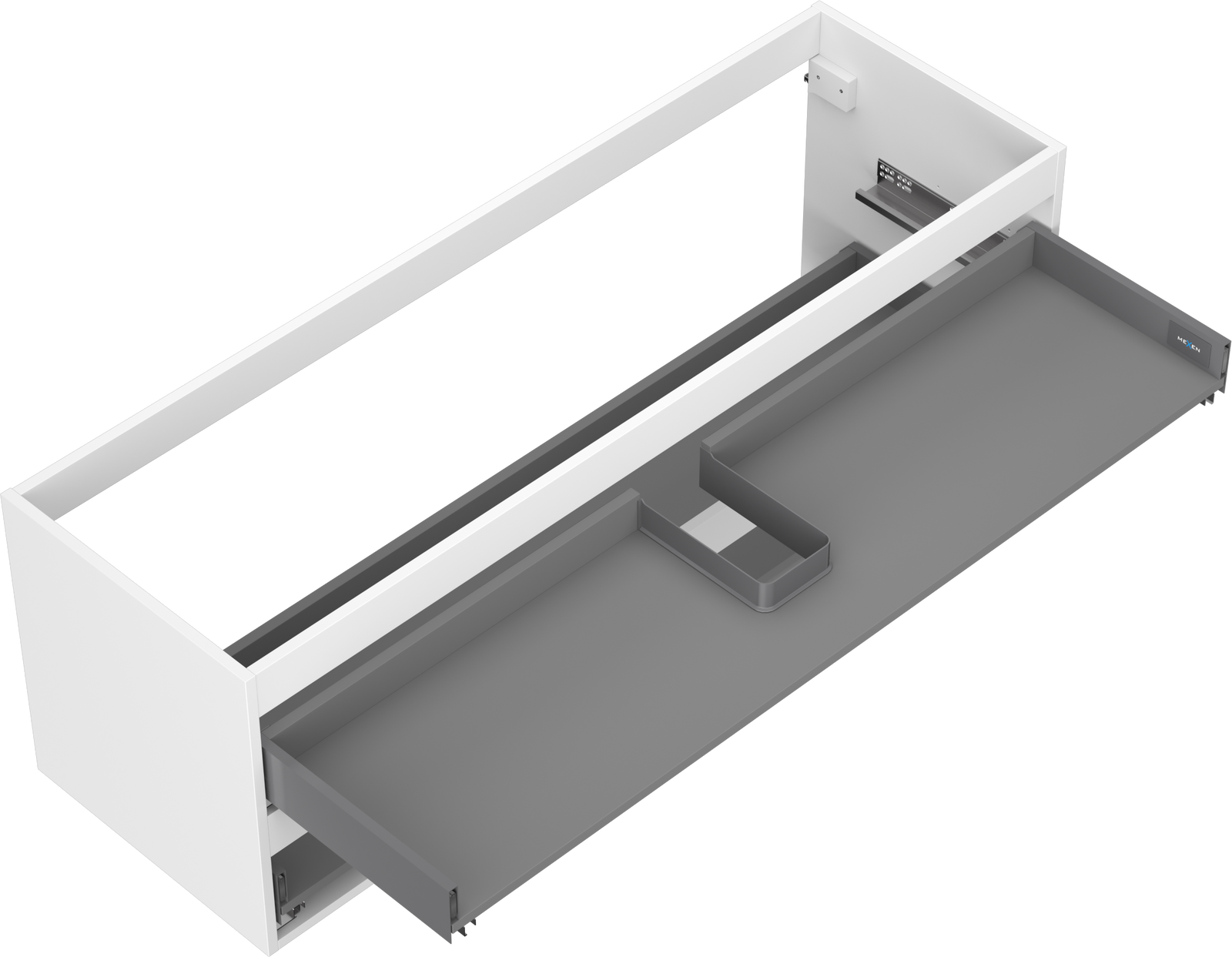 A fiókban lévő kivágás úgy van kialakítva, hogy befogadja a mosdó telepítéseknél szükséges szifont. Ennek köszönhetően a bútor teljesen funkcionálisan felszerelhető anélkül, hogy a fiók terének egy részét fel kellene áldozni a telepítés miatt.