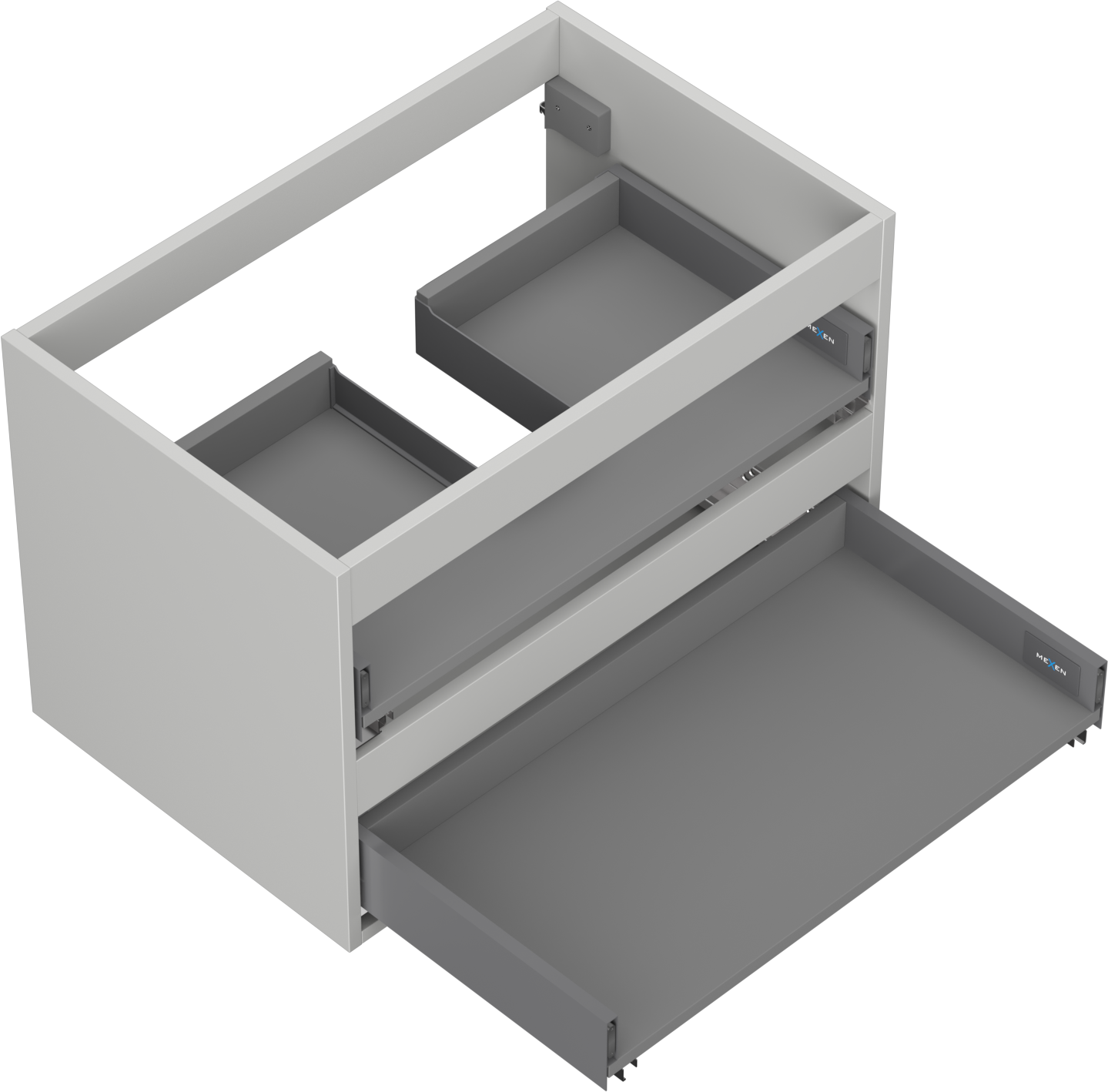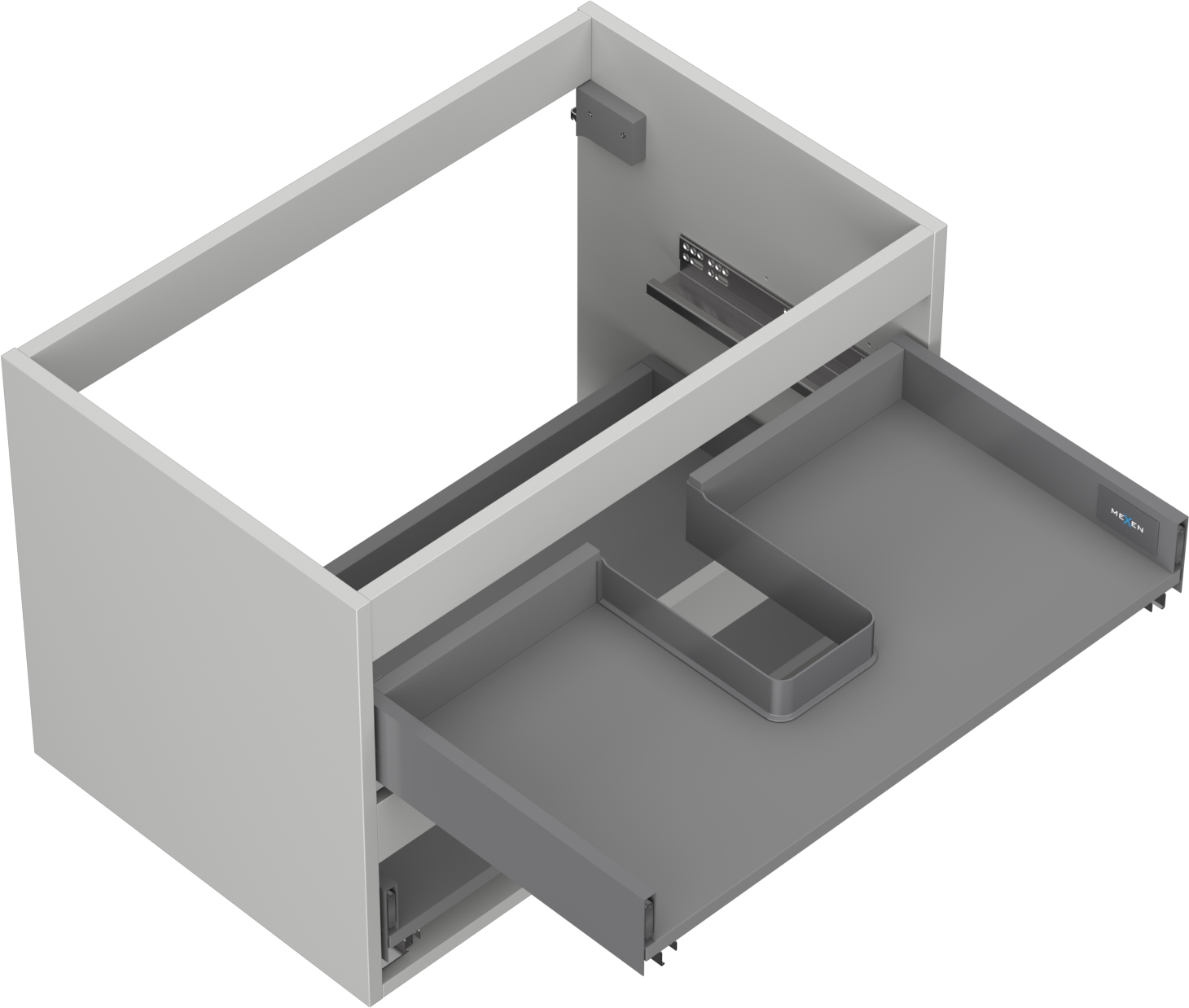 A fiókban lévő kivágás úgy van kialakítva, hogy befogadja a mosdó telepítéseknél szükséges szifont. Ennek köszönhetően a bútor teljesen funkcionálisan felszerelhető anélkül, hogy a fiók terének egy részét fel kellene áldozni a telepítés miatt.