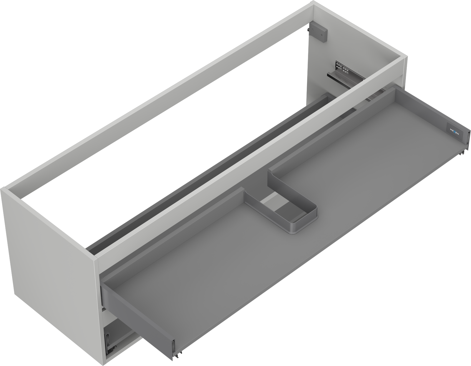 A fiókban lévő kivágás úgy van kialakítva, hogy befogadja a mosdó telepítéseknél szükséges szifont. Ennek köszönhetően a bútor teljesen funkcionálisan felszerelhető anélkül, hogy a fiók terének egy részét fel kellene áldozni a telepítés miatt.