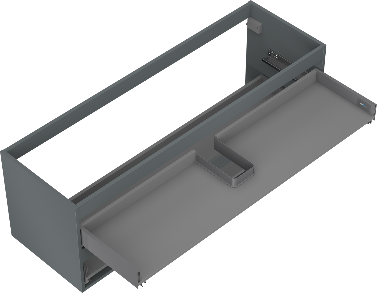 A fiókban lévő kivágás úgy van kialakítva, hogy befogadja a mosdó telepítéseknél szükséges szifont. Ennek köszönhetően a bútor teljesen funkcionálisan felszerelhető anélkül, hogy a fiók terének egy részét fel kellene áldozni a telepítés miatt.