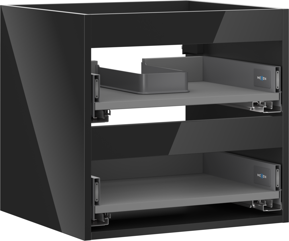 A fiókban lévő kivágás úgy van kialakítva, hogy befogadja a mosdó telepítéseknél szükséges szifont. Ennek köszönhetően a bútor teljesen funkcionálisan felszerelhető anélkül, hogy a fiók terének egy részét fel kellene áldozni a telepítés miatt.
