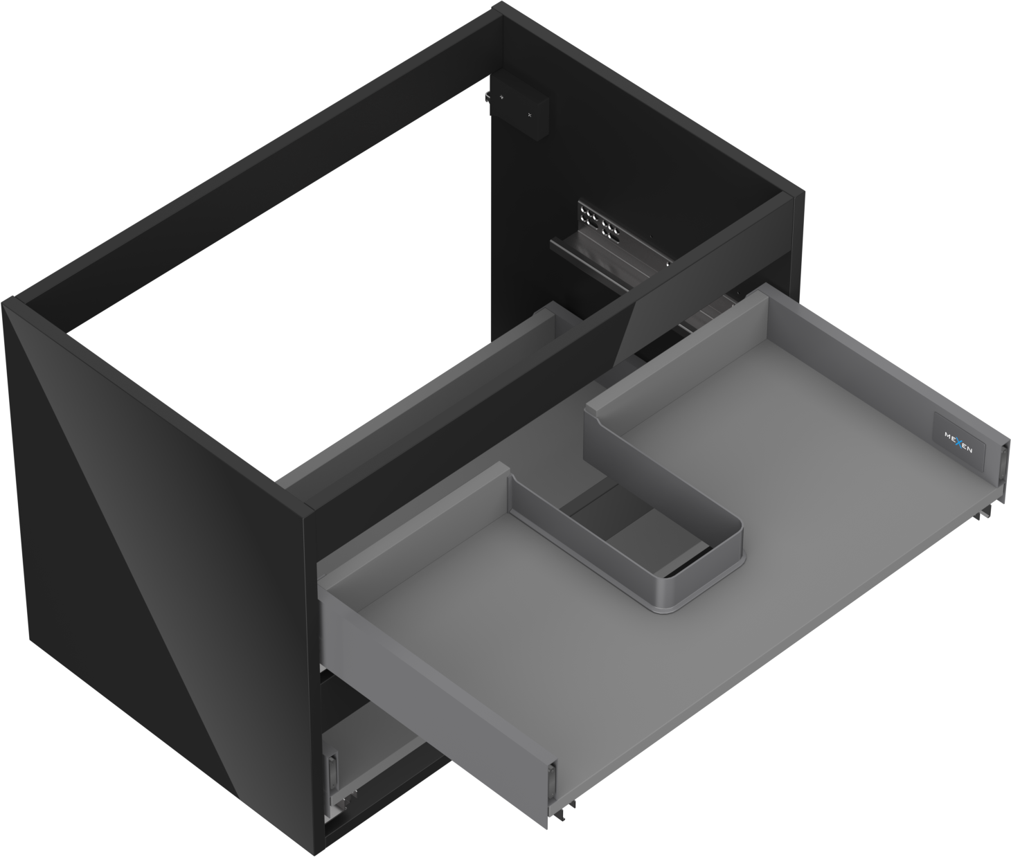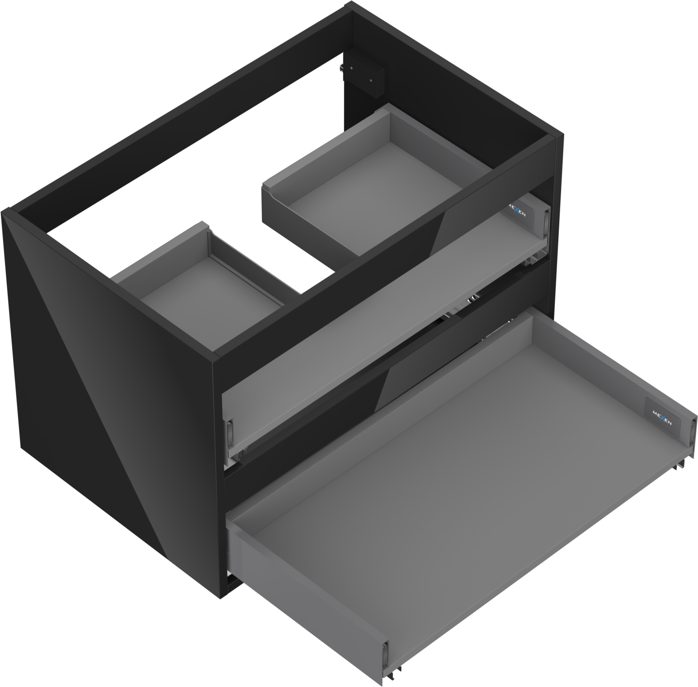 A fiókban lévő kivágás úgy van kialakítva, hogy befogadja a mosdó telepítéseknél szükséges szifont. Ennek köszönhetően a bútor teljesen funkcionálisan felszerelhető anélkül, hogy a fiók terének egy részét fel kellene áldozni a telepítés miatt.