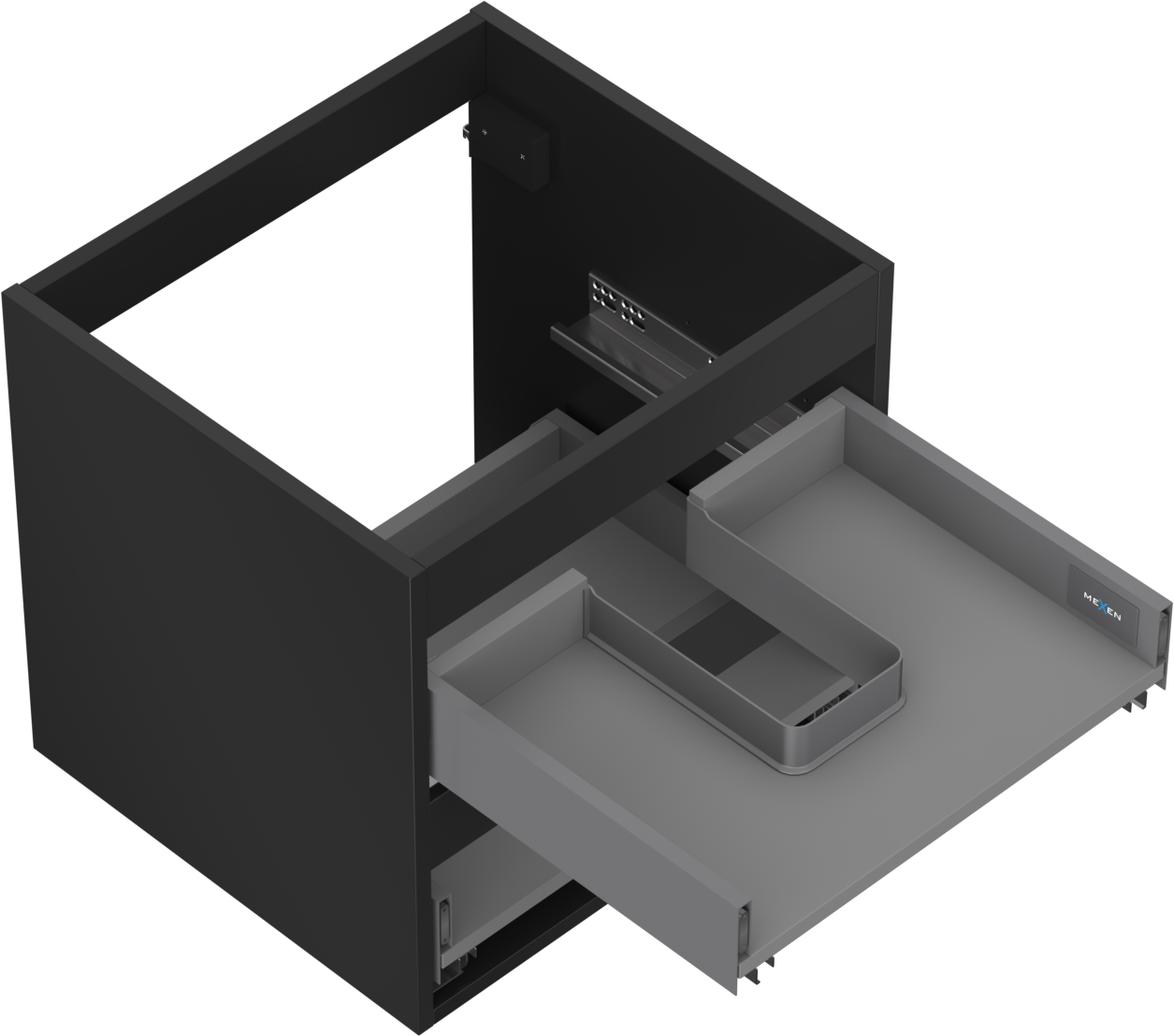 A fiókban lévő kivágás úgy van kialakítva, hogy befogadja a mosdó telepítéseknél szükséges szifont. Ennek köszönhetően a bútor teljesen funkcionálisan felszerelhető anélkül, hogy a fiók terének egy részét fel kellene áldozni a telepítés miatt.