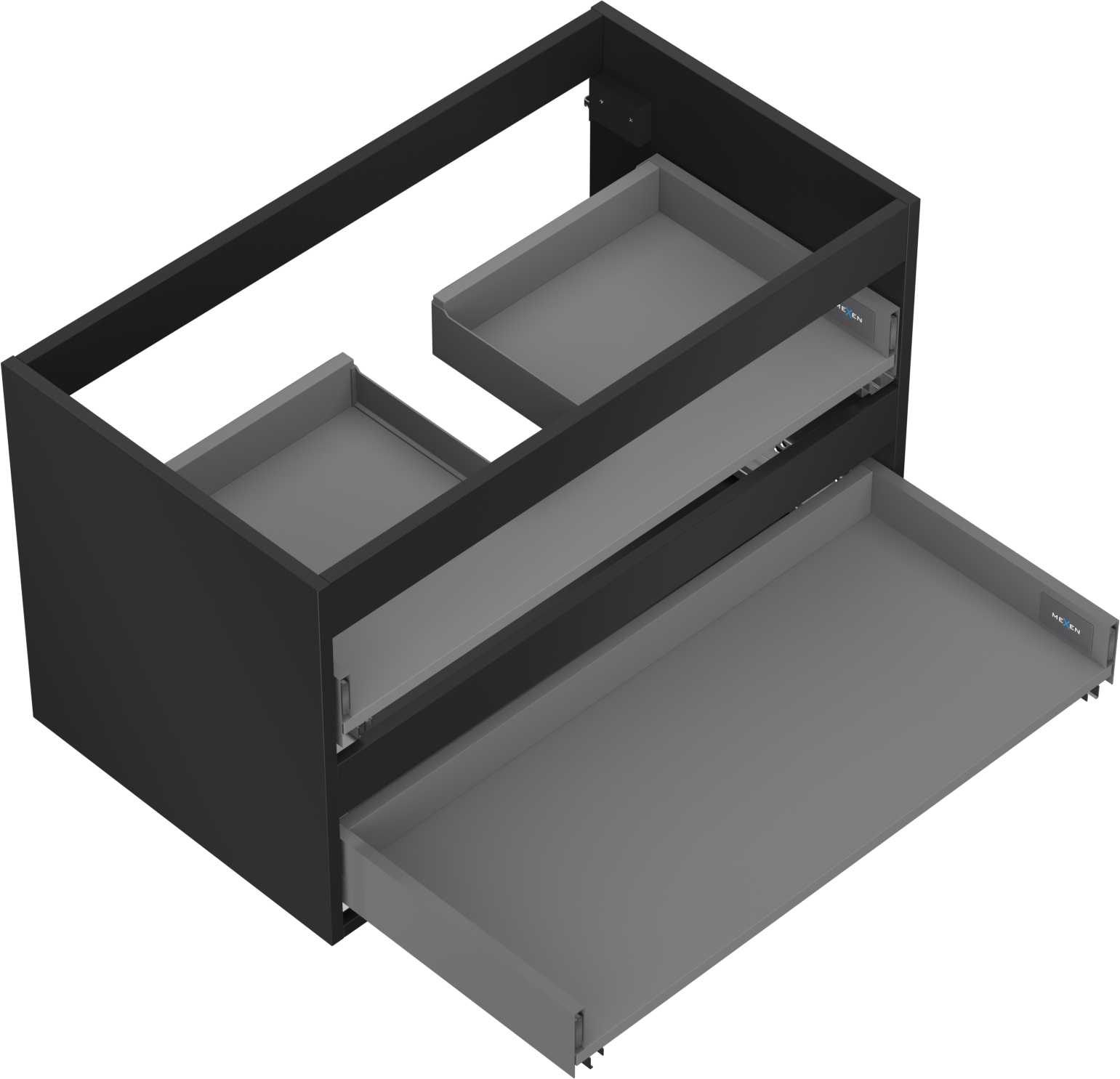 A fiókban lévő kivágás úgy van kialakítva, hogy befogadja a mosdó telepítéseknél szükséges szifont. Ennek köszönhetően a bútor teljesen funkcionálisan felszerelhető anélkül, hogy a fiók terének egy részét fel kellene áldozni a telepítés miatt.
