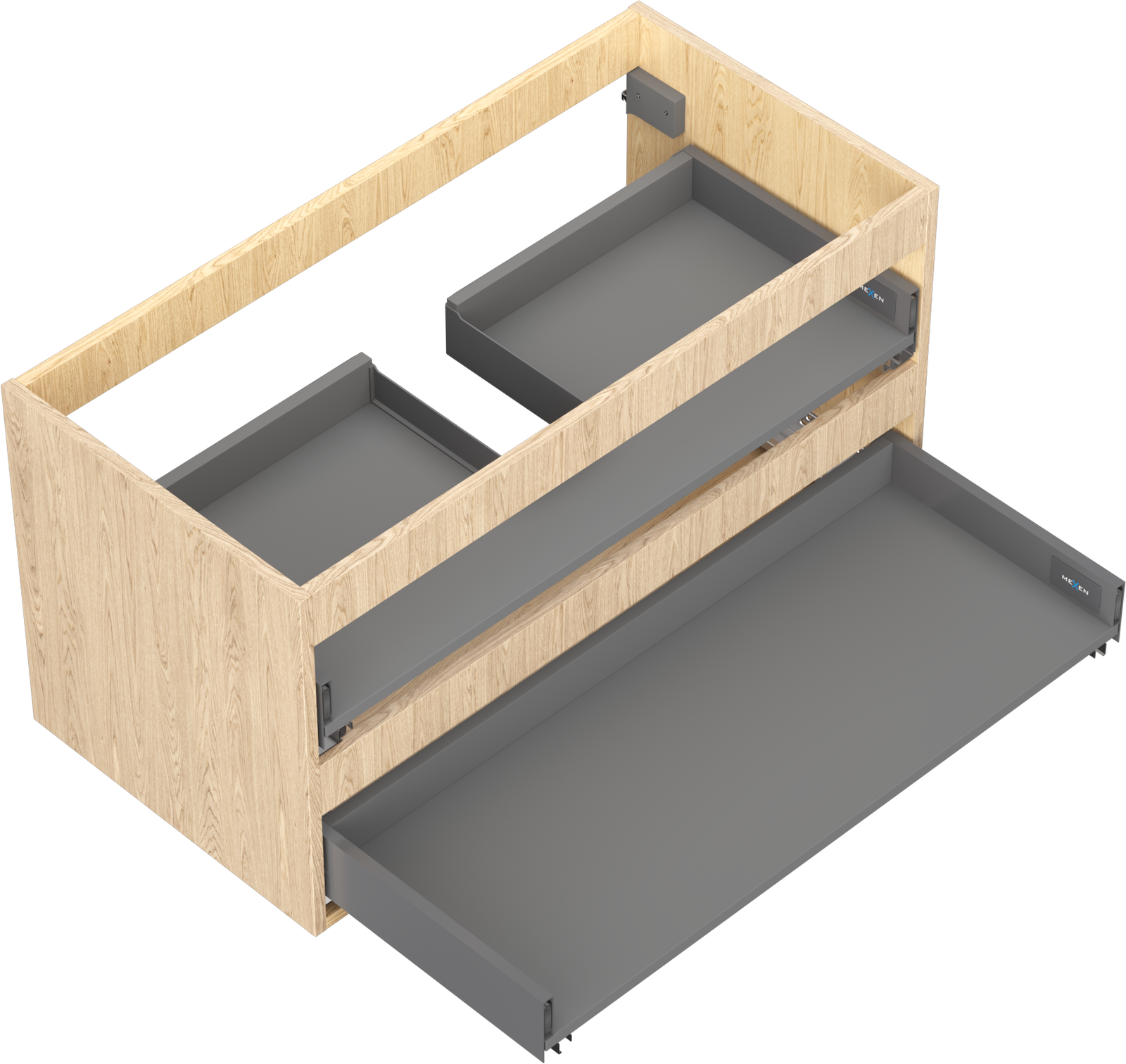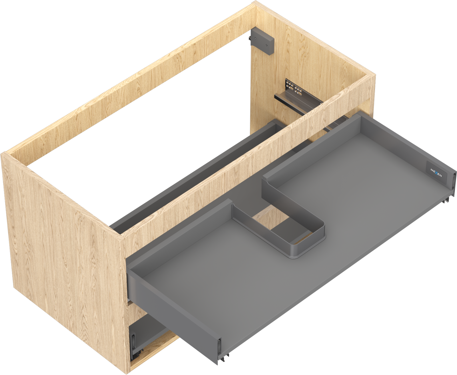 A fiókban lévő kivágás úgy van kialakítva, hogy befogadja a mosdó telepítéseknél szükséges szifont. Ennek köszönhetően a bútor teljesen funkcionálisan felszerelhető anélkül, hogy a fiók terének egy részét fel kellene áldozni a telepítés miatt.