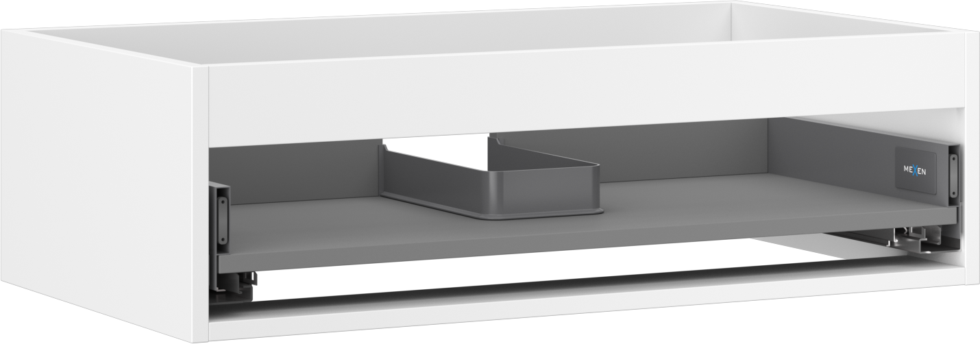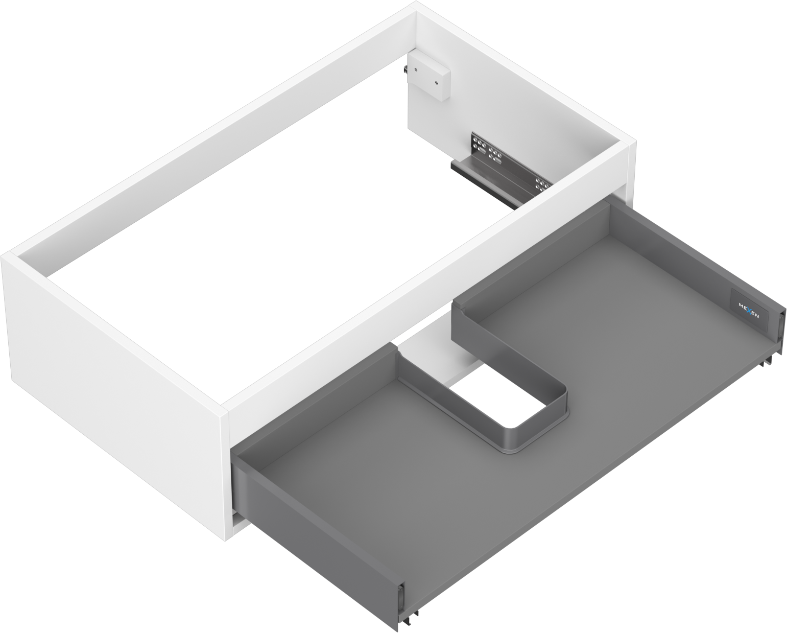 A fiókban lévő kivágás úgy van kialakítva, hogy befogadja a mosdó telepítéseknél szükséges szifont. Ennek köszönhetően a bútor teljesen funkcionálisan felszerelhető anélkül, hogy a fiók terének egy részét fel kellene áldozni a telepítés miatt.