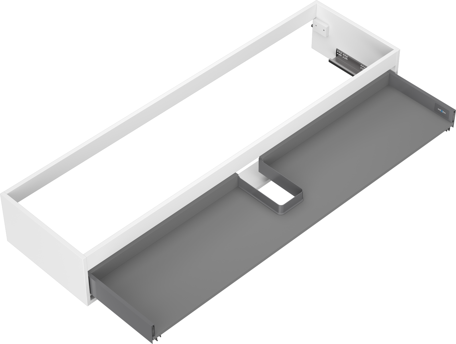 A fiókban lévő kivágás úgy van kialakítva, hogy befogadja a mosdó telepítéseknél szükséges szifont. Ennek köszönhetően a bútor teljesen funkcionálisan felszerelhető anélkül, hogy a fiók terének egy részét fel kellene áldozni a telepítés miatt.
