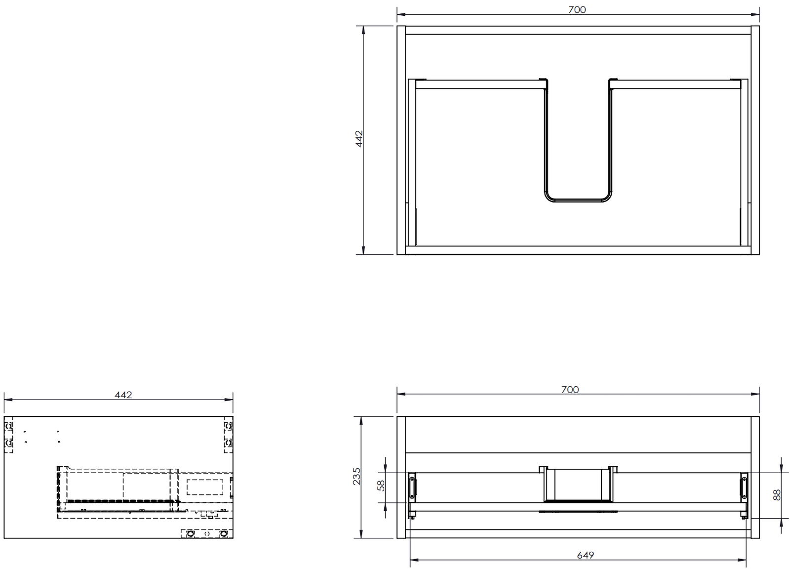 A fiókban lévő kivágás úgy van kialakítva, hogy befogadja a mosdó telepítéseknél szükséges szifont. Ennek köszönhetően a bútor teljesen funkcionálisan felszerelhető anélkül, hogy a fiók terének egy részét fel kellene áldozni a telepítés miatt.