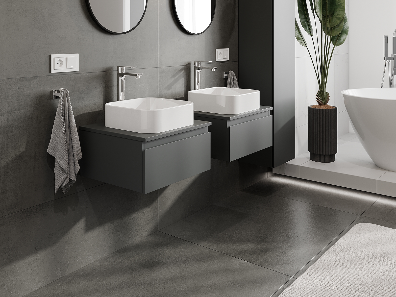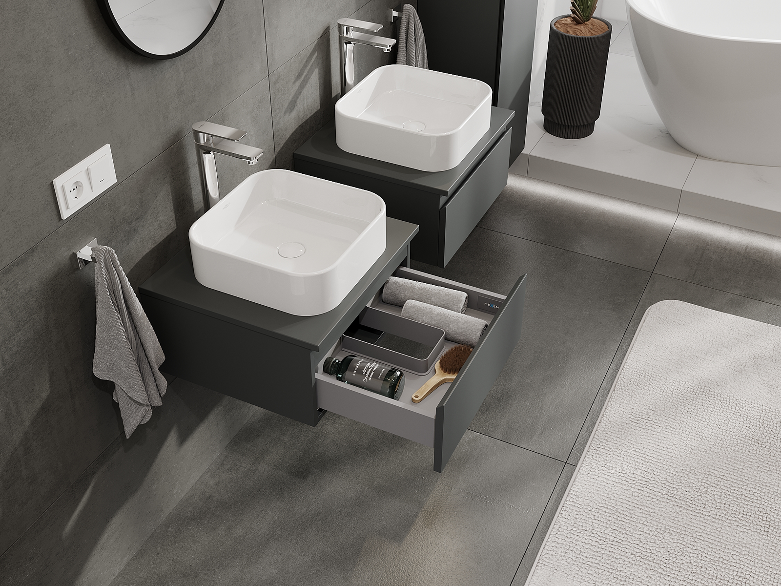A moduláris fürdőszobabútorainkat különböző színkonfigurációkban lehet kombinálni, lehetővé téve a teljes személyre szabást. Kiválasztható mind az egyes elemek megjelenése, mind pedig funkciói, ami lehetővé teszi a bútorok személyes stílus- és használati preferenciákhoz való igazítását.
