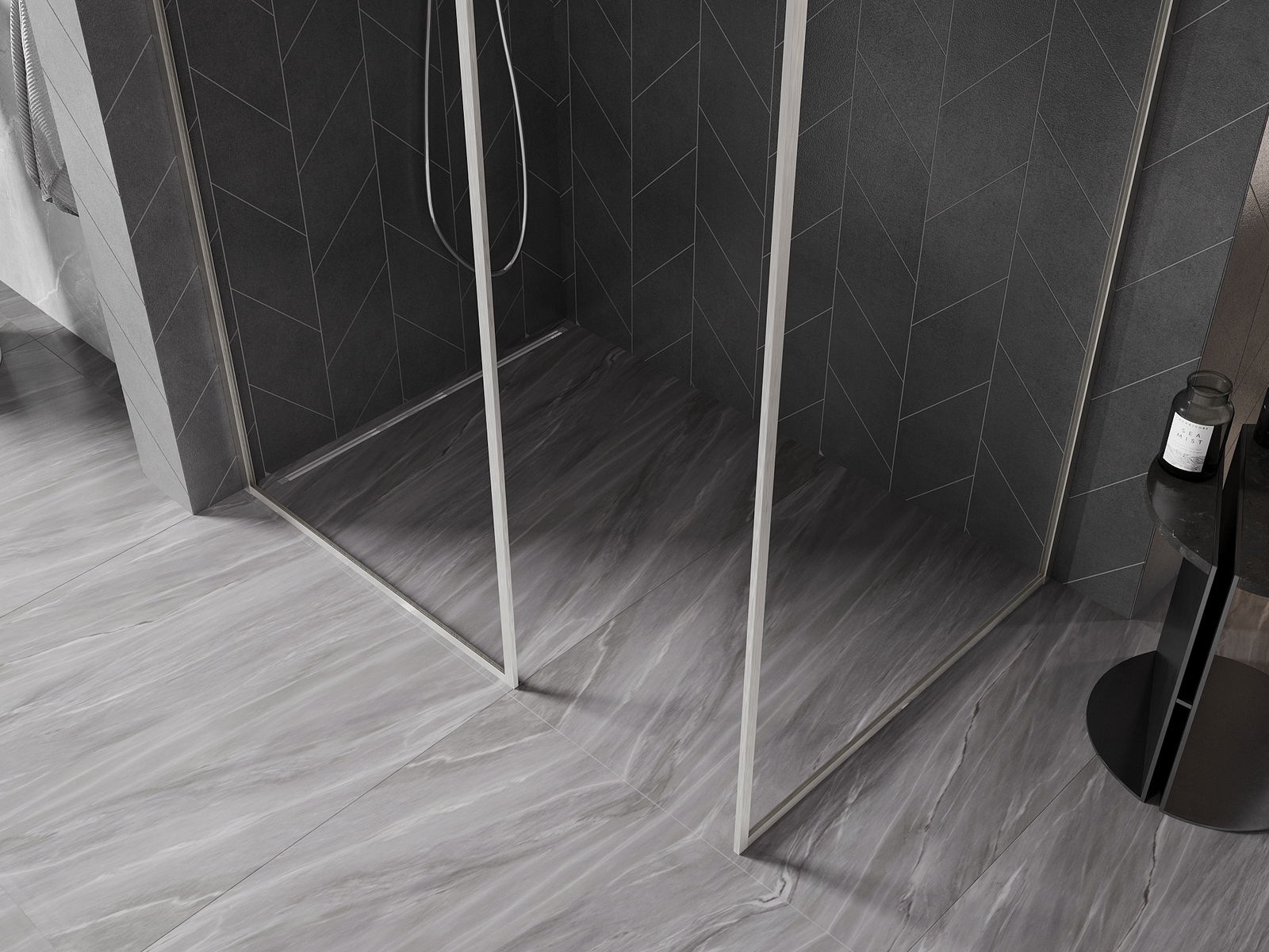 Mexen Kioto-F Walk-in zuhanyfal kerettel 170 x 105 cm, átlátszó 8 mm, kefélt nikkel - 800-170-202-04-97-105