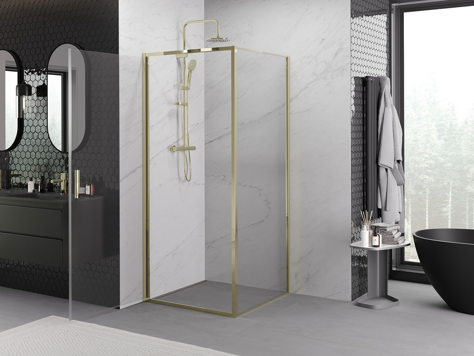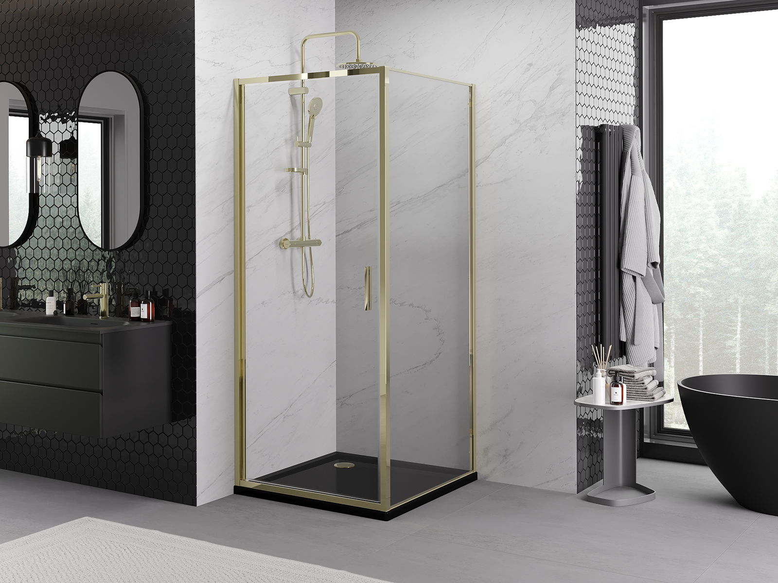 Mexen Exo nyíló zuhanykabin 100 x 100 cm, átlátszó, arany - 817-100-100-50-00