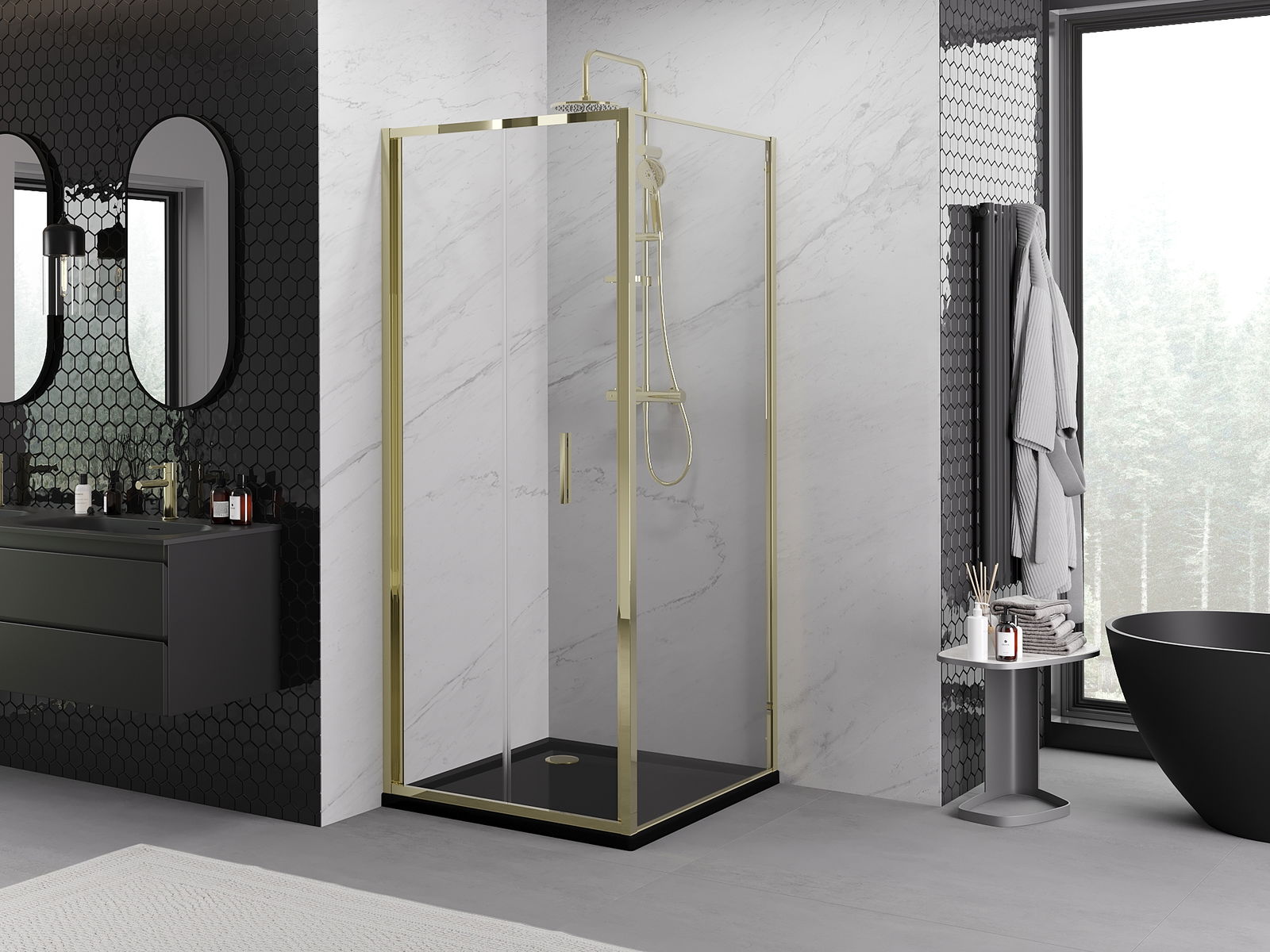 Mexen Exo összecsukható zuhanykabin 90 x 90 cm, átlátszó, arany - 816-090-090-50-00