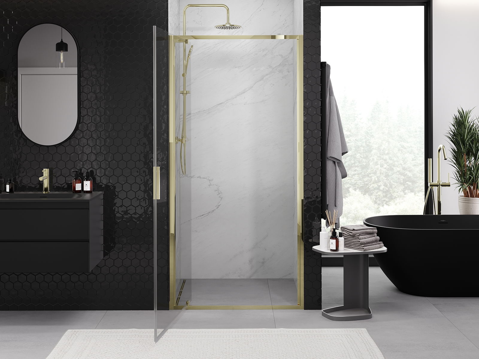 Mexen Exo 80 cm-es, átlátszó, aranyszínű nyíló zuhanyajtó - 8181-080-000-50-00