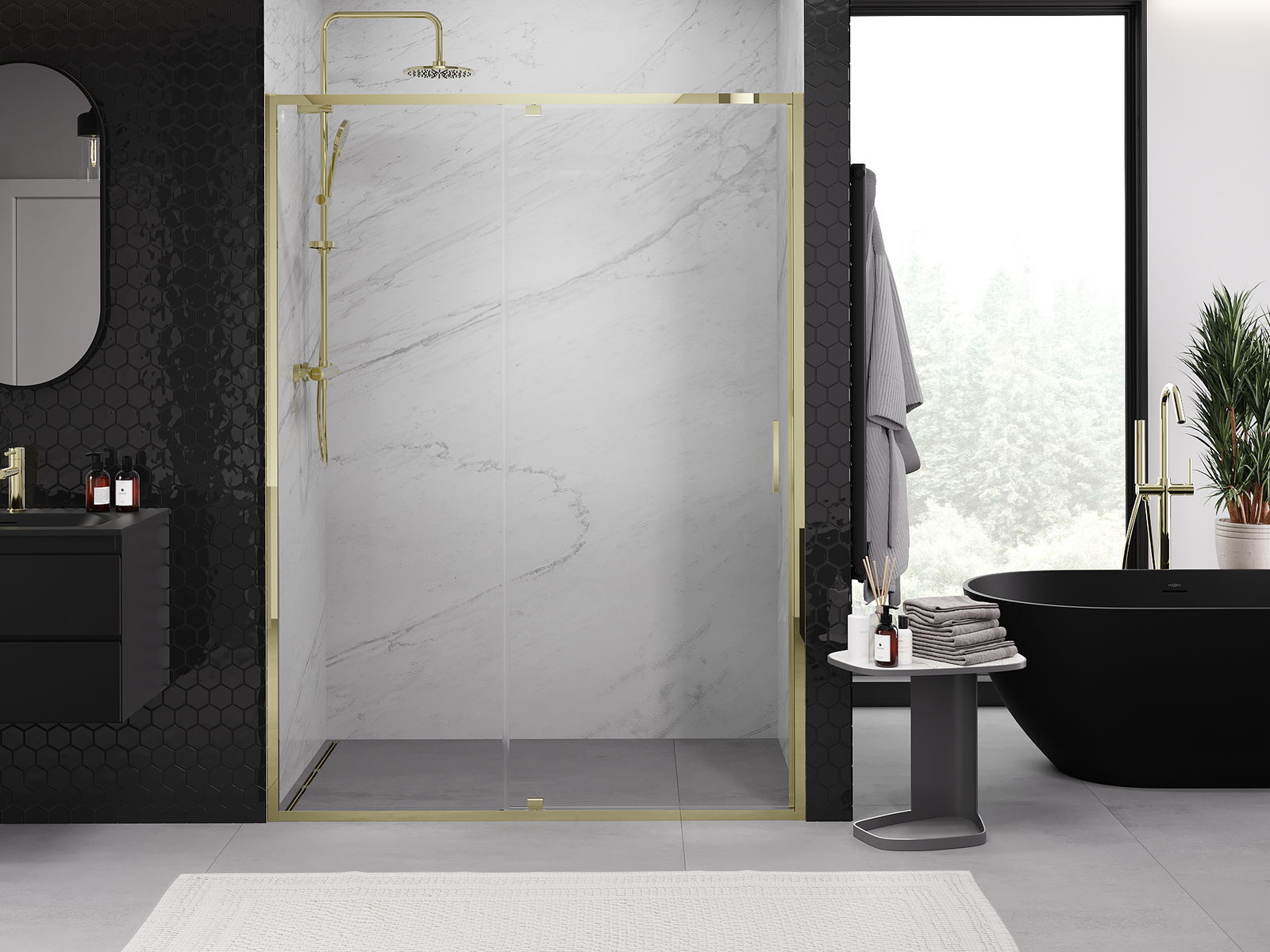 Mexen Exo nyíló zuhanyajtó 140 cm, átlátszó, arany - 819-140-000-50-00