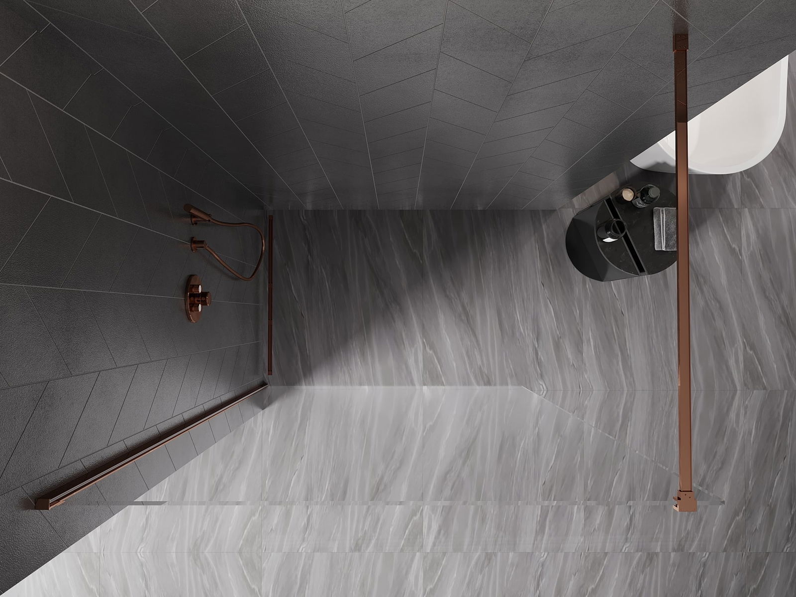 Mexen Kioto-X zuhanyfal Walk-in 50 x 200 cm, átlátszó 10 mm, rózsaarany - 800-050-101-60-00-X