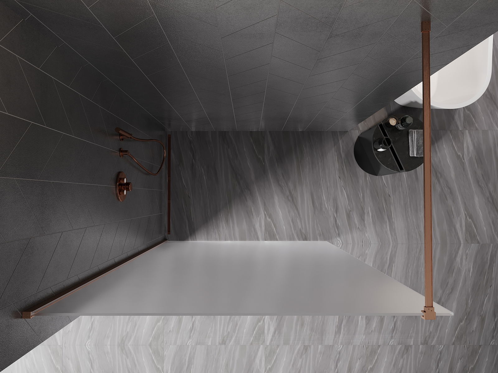 Mexen Kioto-X walk-in zuhanyfal 50 x 200 cm, zúzmarás 10 mm, szálcsiszolt réz - 800-050-101-65-30-X