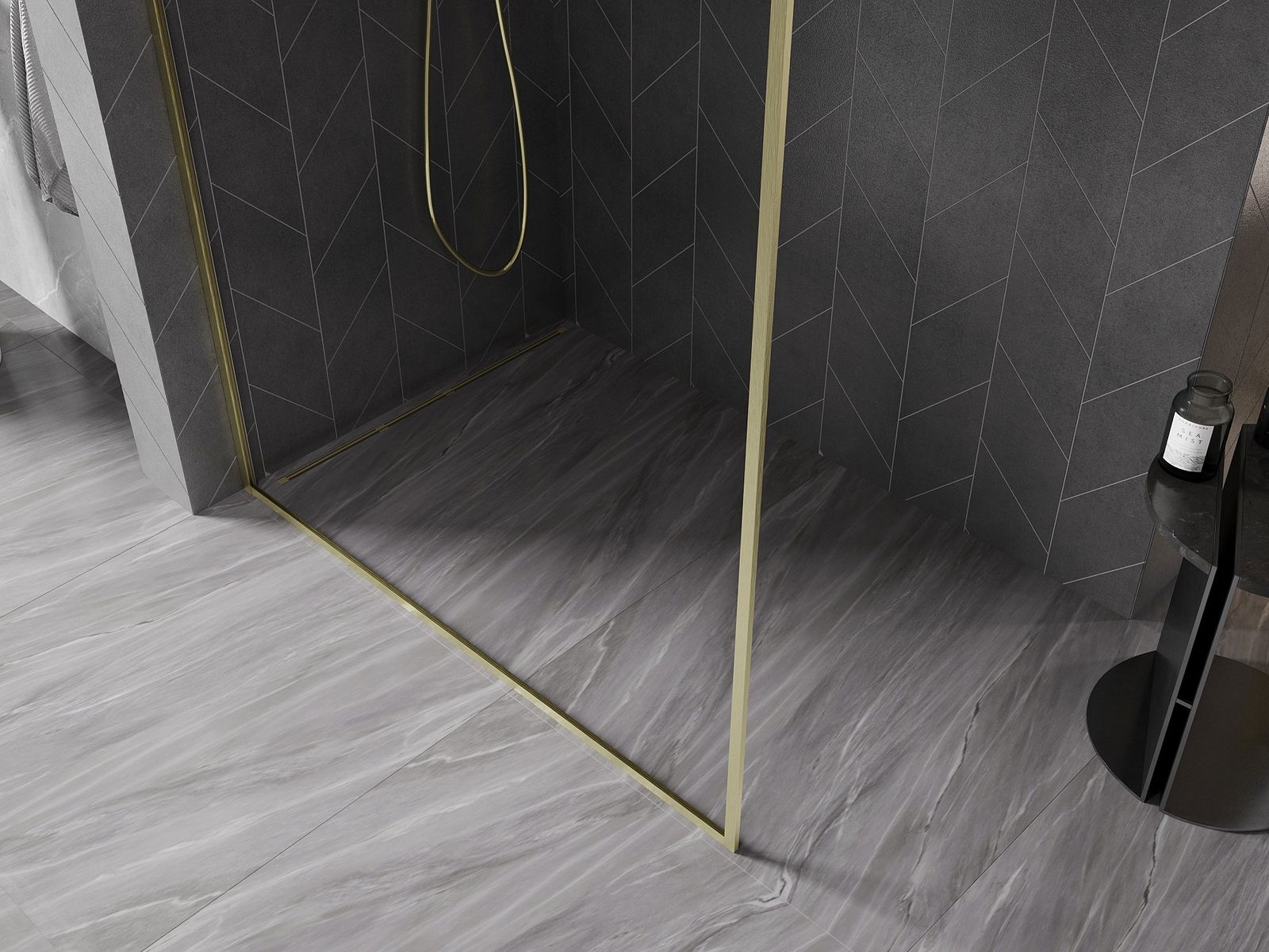 Mexen Kioto-XF Walk-in zuhanyfal kerettel 100 x 202 cm, átlátszó 10 mm, arany kefélt - 800-100-104-55-00-X