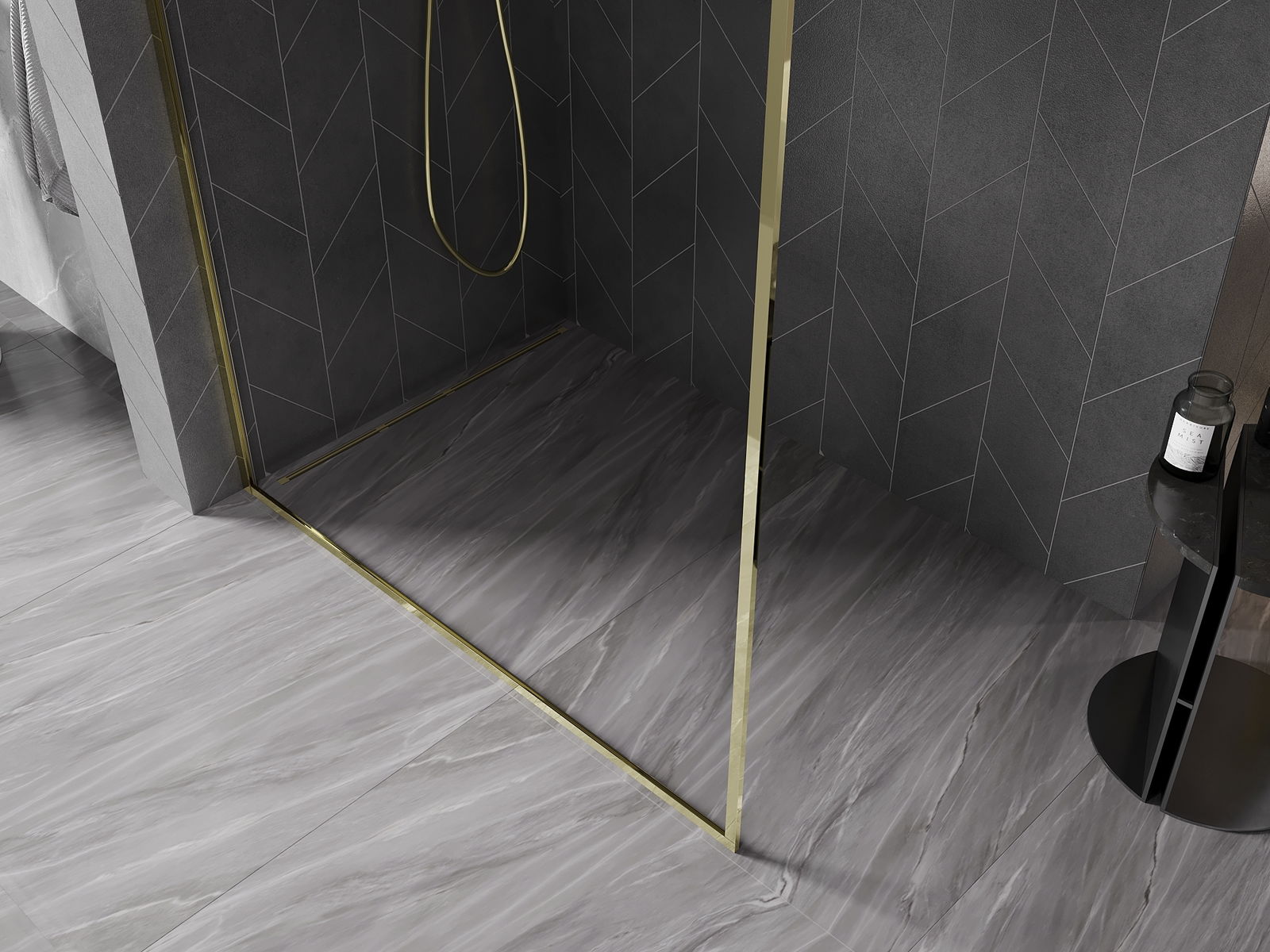 Mexen Kioto-XF L Walk-in zuhanyfal kerettel 110 x 202 cm, átlátszó 10 mm, arany - 800-110-174-50-00-XF