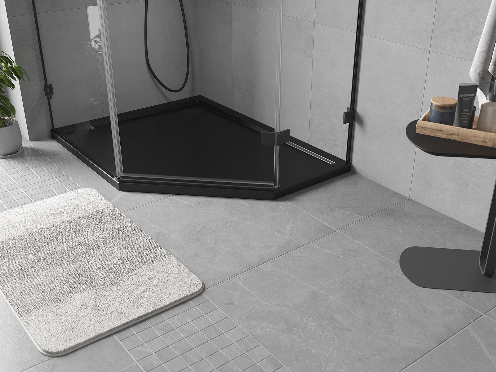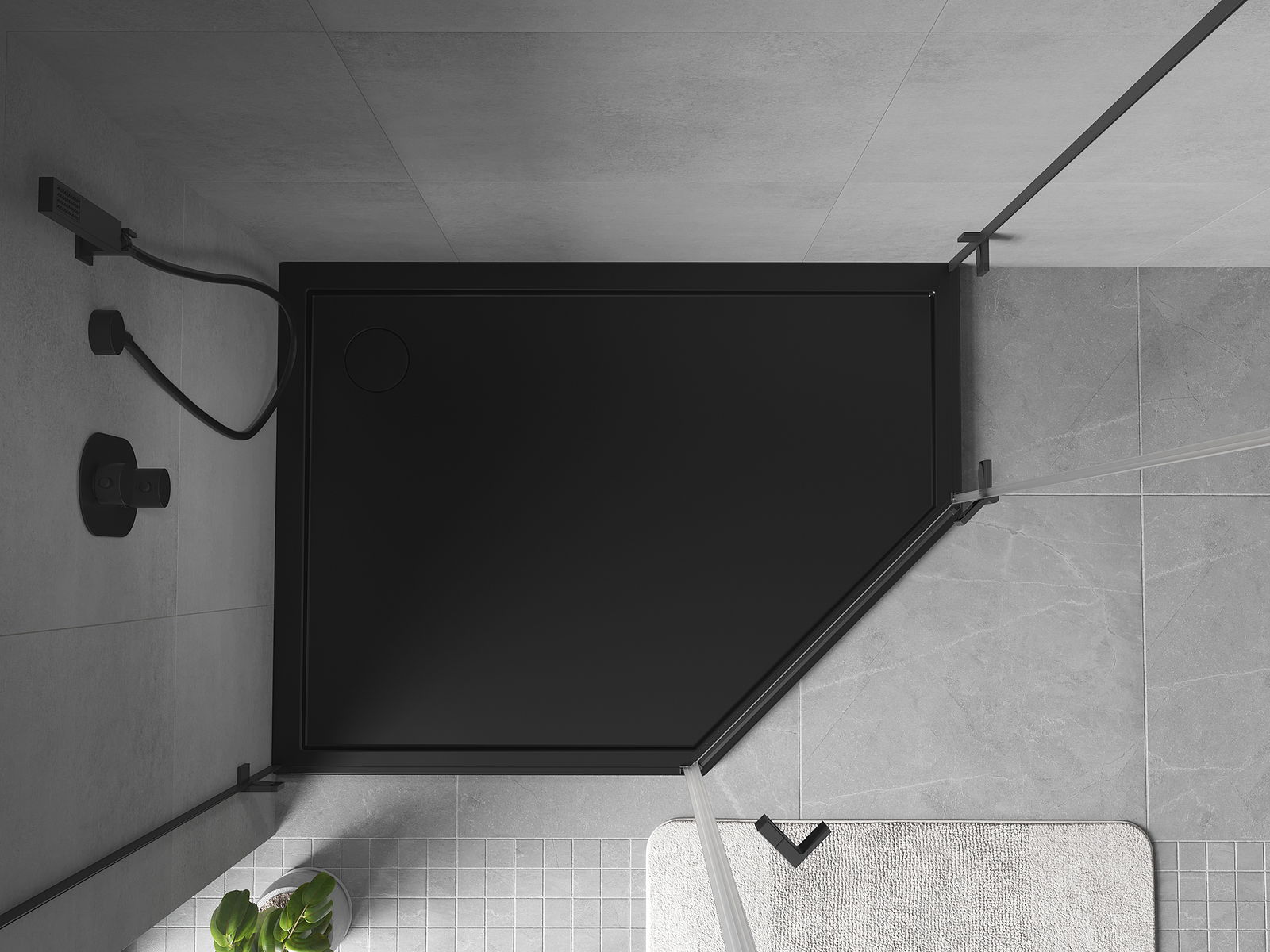 Mexen Flow lapos bal ötszögletű zuhanytálca 100 x 80 cm, fekete matt - 46P708010L