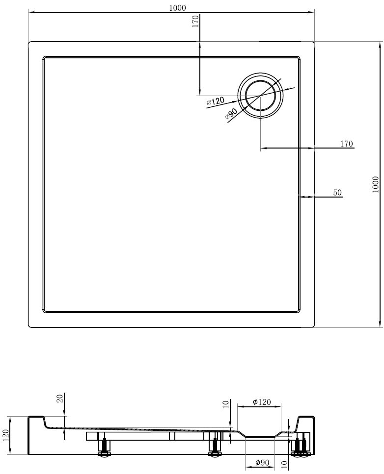 A zuhanytálca alját további üvegszállal és HDF lemezzel erősítették meg, ami nemcsak tartósságot biztosít, hanem a fürdés közbeni biztonságot is garantálja. A megerősített alap hosszú távú használatot biztosít a zuhanytálcának.