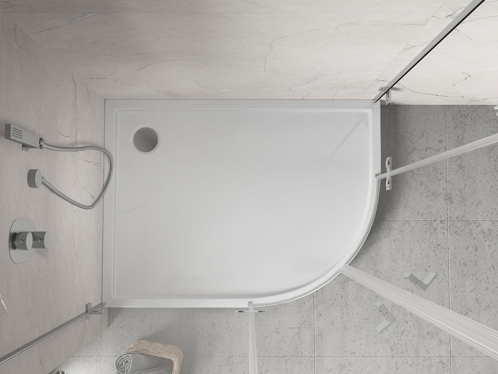 Mexen Flow+ aszimmetrikus bal félköríves zuhanytálca 90 x 80 cm, fehér fényes - 46Q108090LH