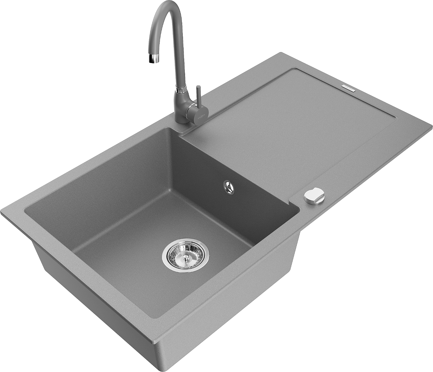 Mexen Leo egykamrás gránit mosogató csepegtetővel és Telma konyhai csappal, szürke - 6501-71-670200-71